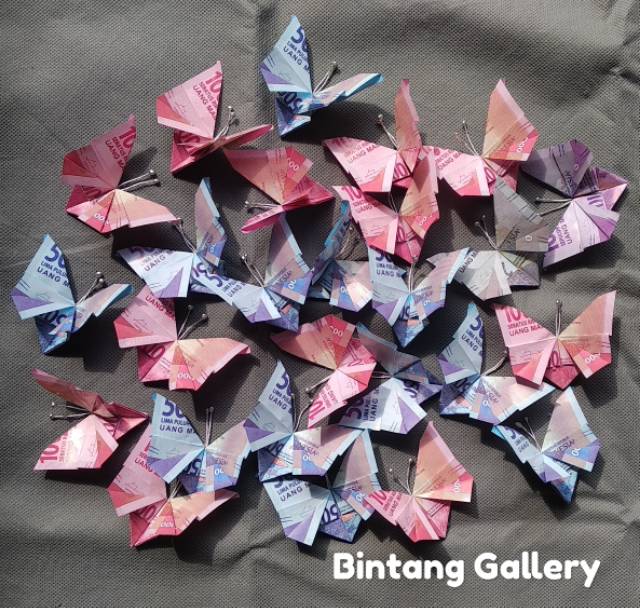 Origami kupu-kupu dari uang kertas mainan / kupu-kupu bahan mahar