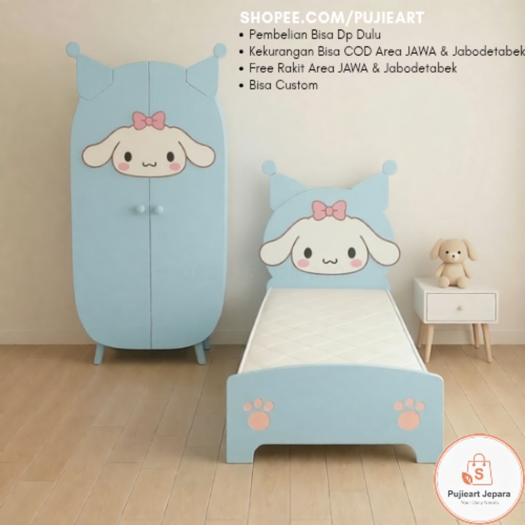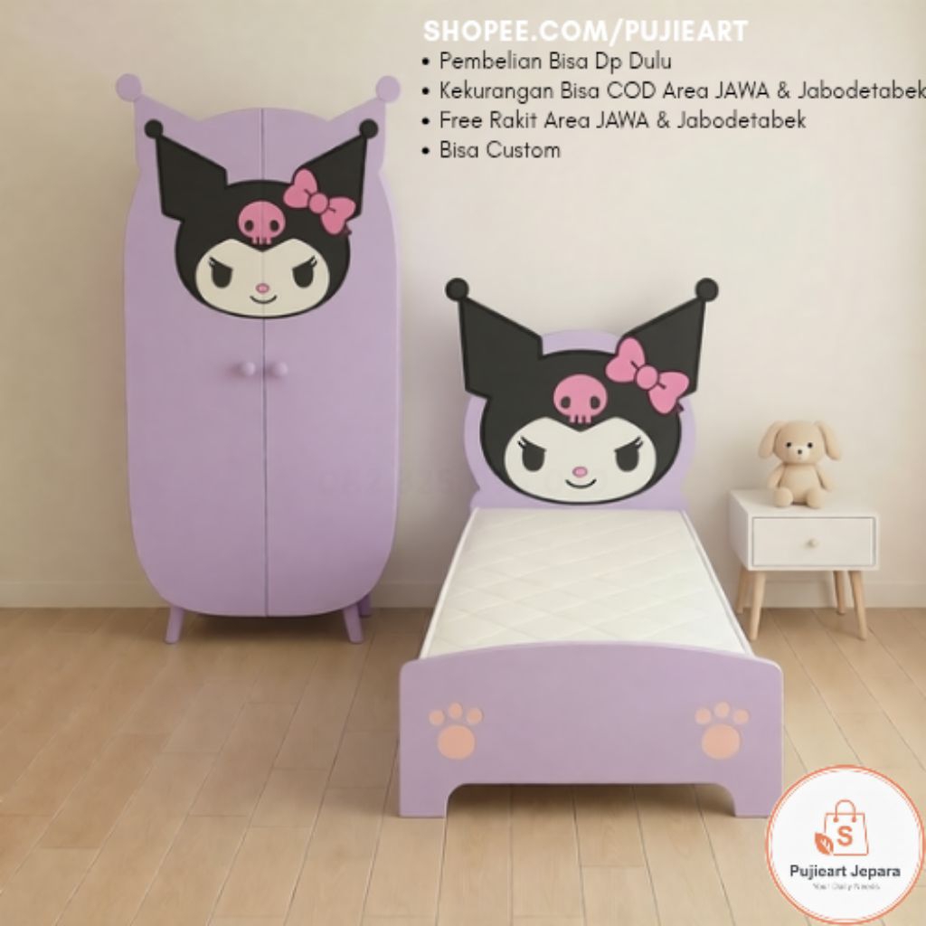 Tempat Tidur Kuromi Anak Perempuan Plus Almari Pakaian