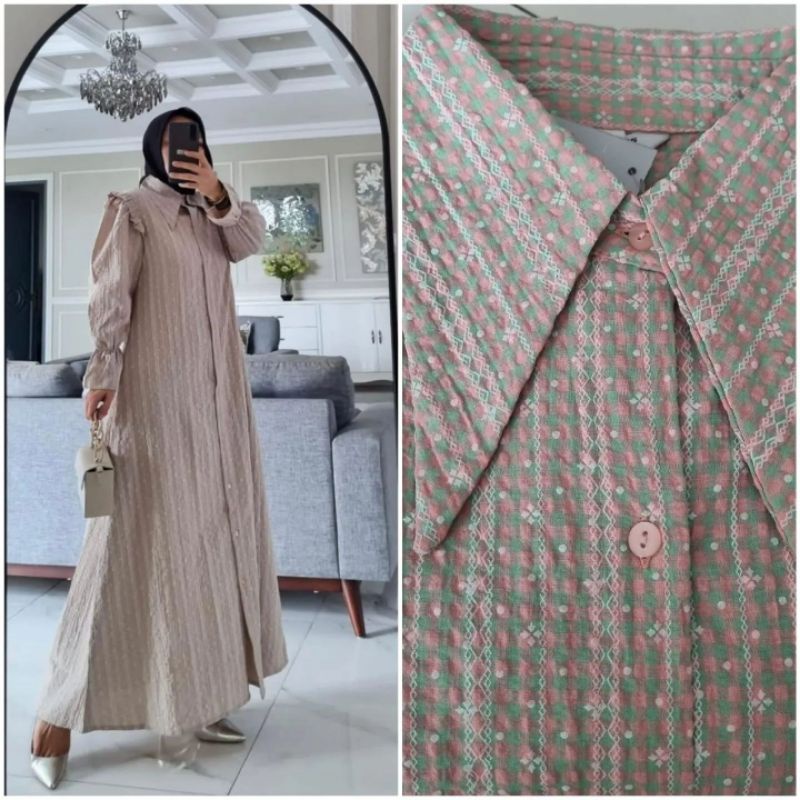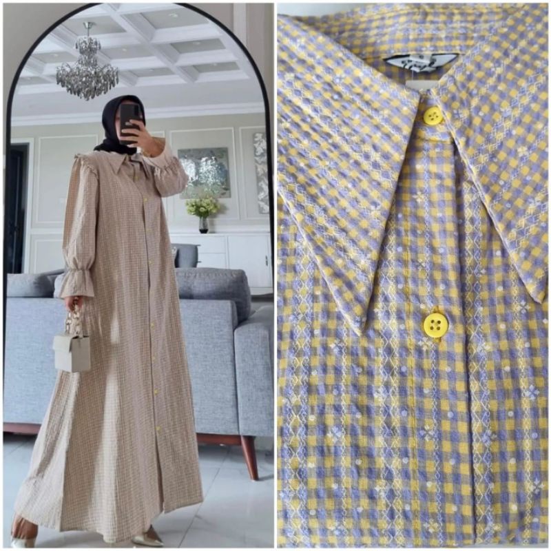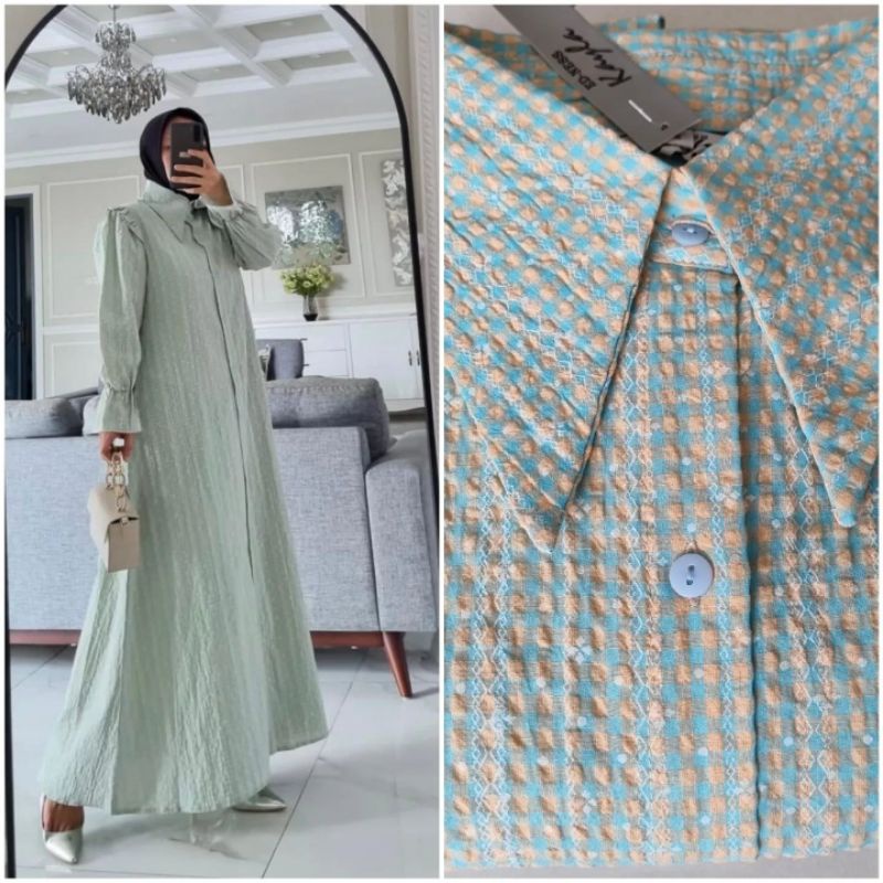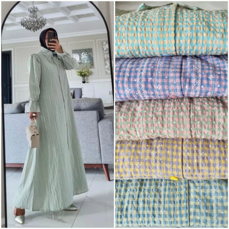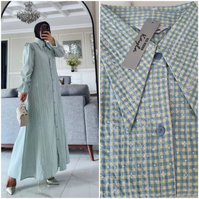 Gamis Nylon Print motif kotak 2warna ori by Edness Kayla