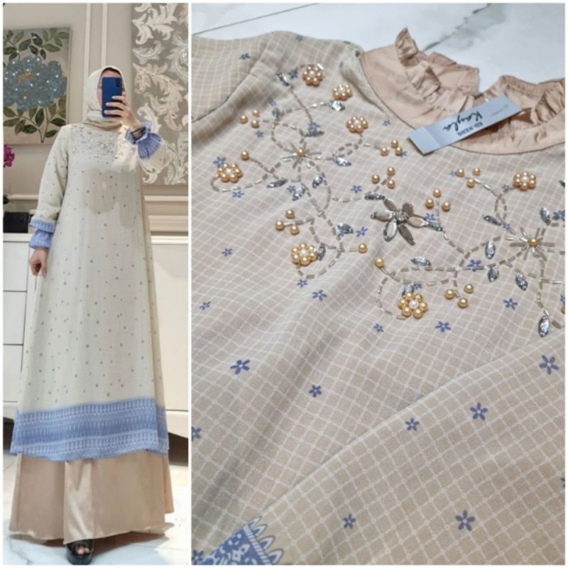 Gamis malaysia bahan ceruty babydoll mix armanisilk +fayet plus jilbab polos Ori by Edness kayla