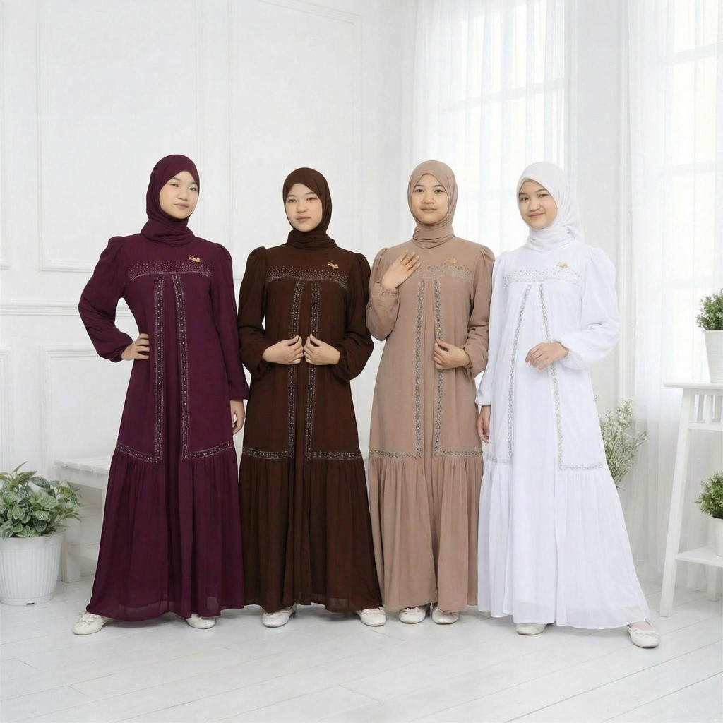 [Ready Stok] Gamis Anak Perempuan Remaja Tanggung 2026 Mahogany Set Hijab Ceruty Babydoll Mix Payet Swarovski