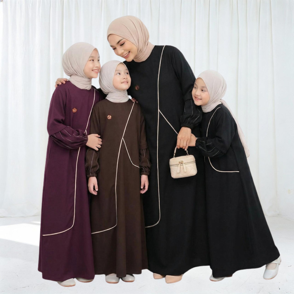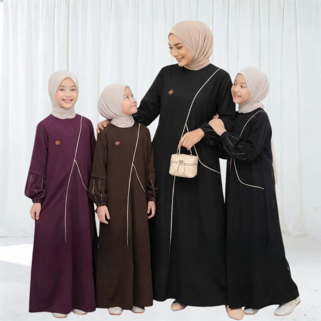 [Ready Stok] Gamis Couple Ibu Anak Perempuan 2026 Abaya Muslim Wanita Sabrina Anti UV Dress Mewah Terbaru