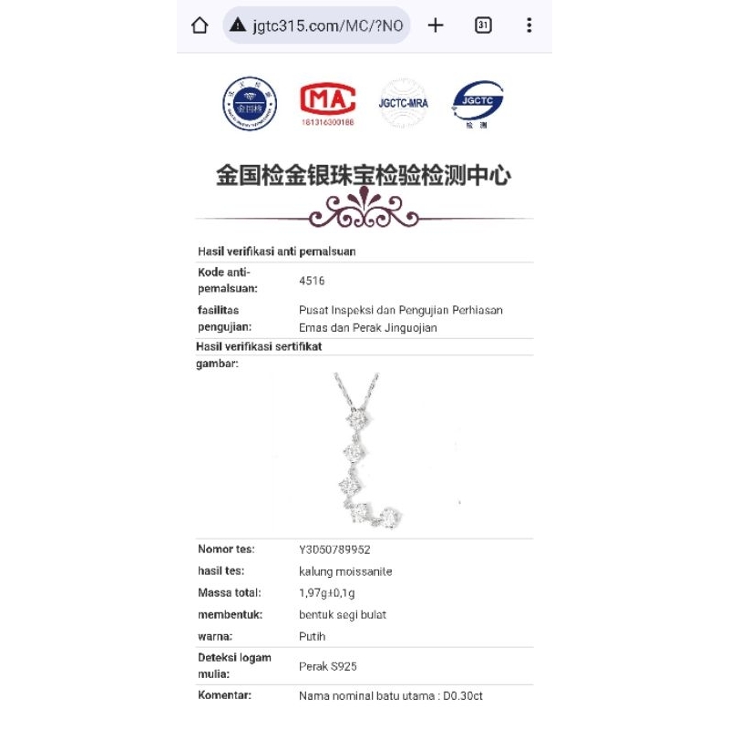 Kalung Mosang KM156 Kalung Moissanite OSD Olla Shopping Depok