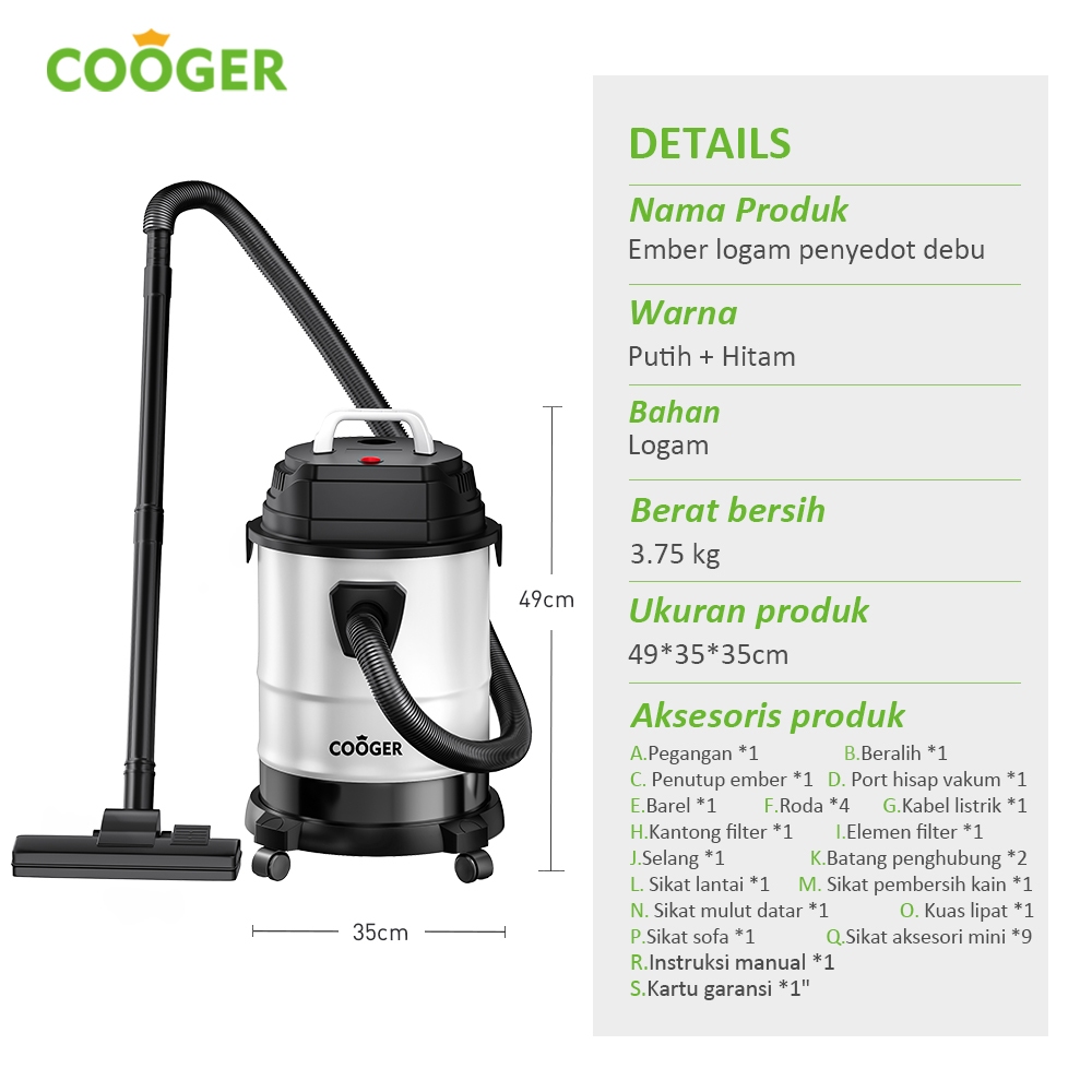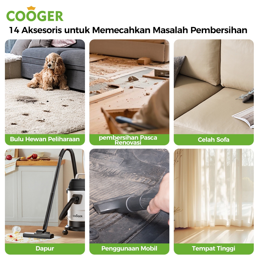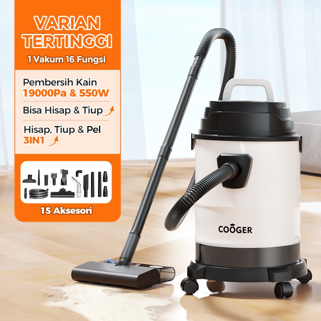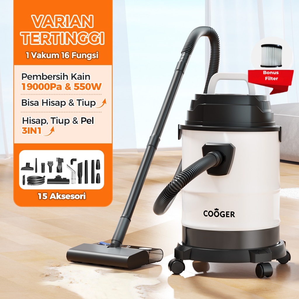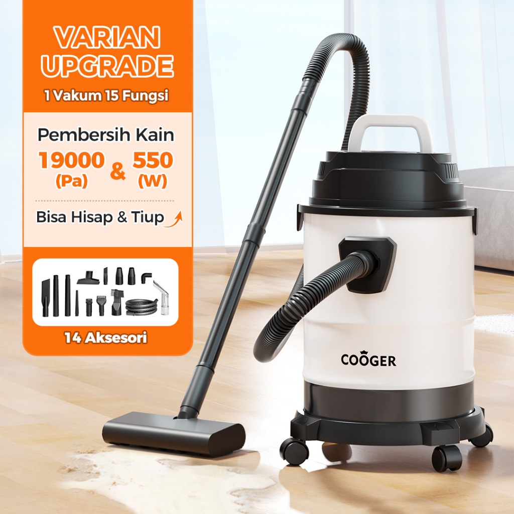 COOGER Vacuum Cleaner Vacuum Wet And Dry Rumah Penyedot Debu 18L Metal 14IN1 Vacuum Cleaner Basah Dan Kering 14IN1 Vacuum Portable Multifungsi Pembersih Mobil Sofa Karpet Anti Tungau