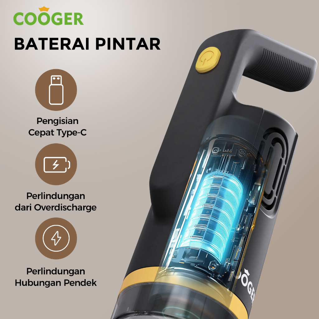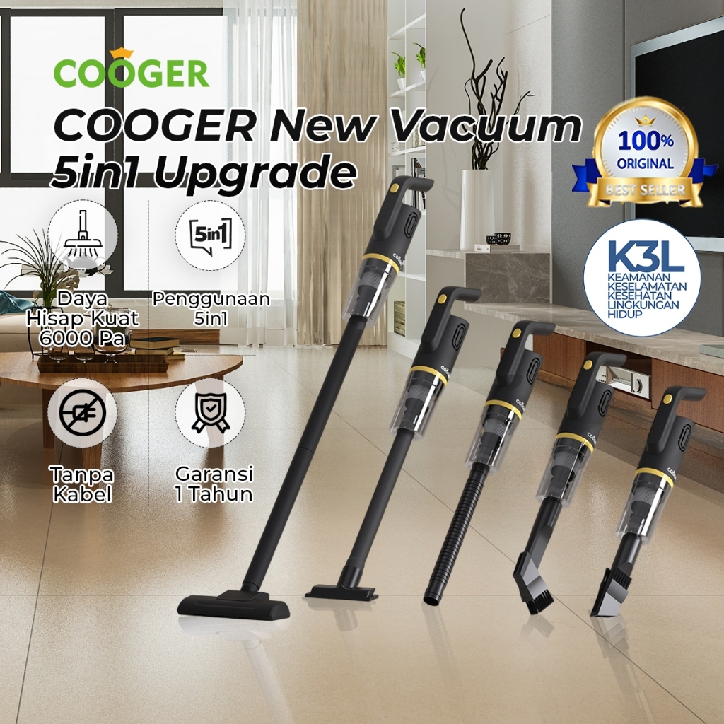 COOGER New Vakum cleaner Vacuum Lantai Penyedot Debu 5IN1 Vacuum Kasur Daya Hisap Besar 6000Pa Cordless