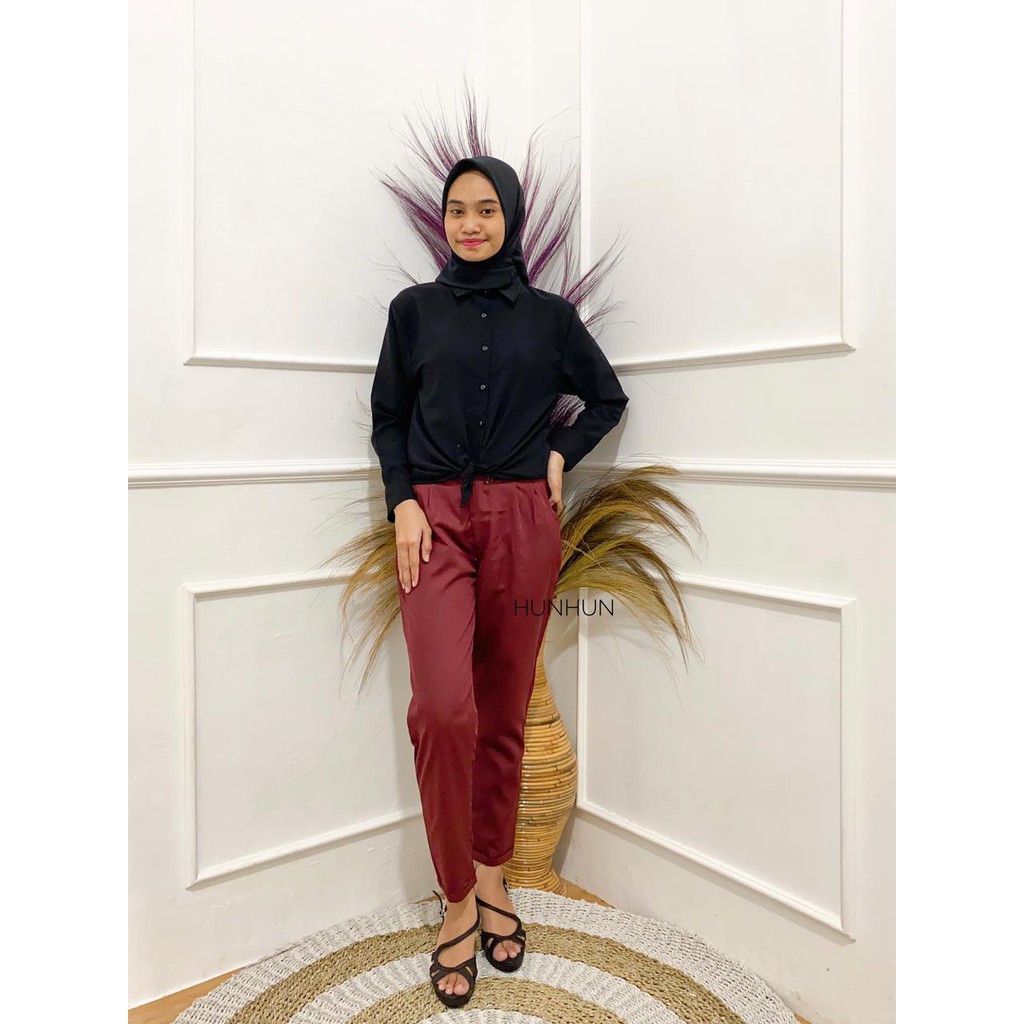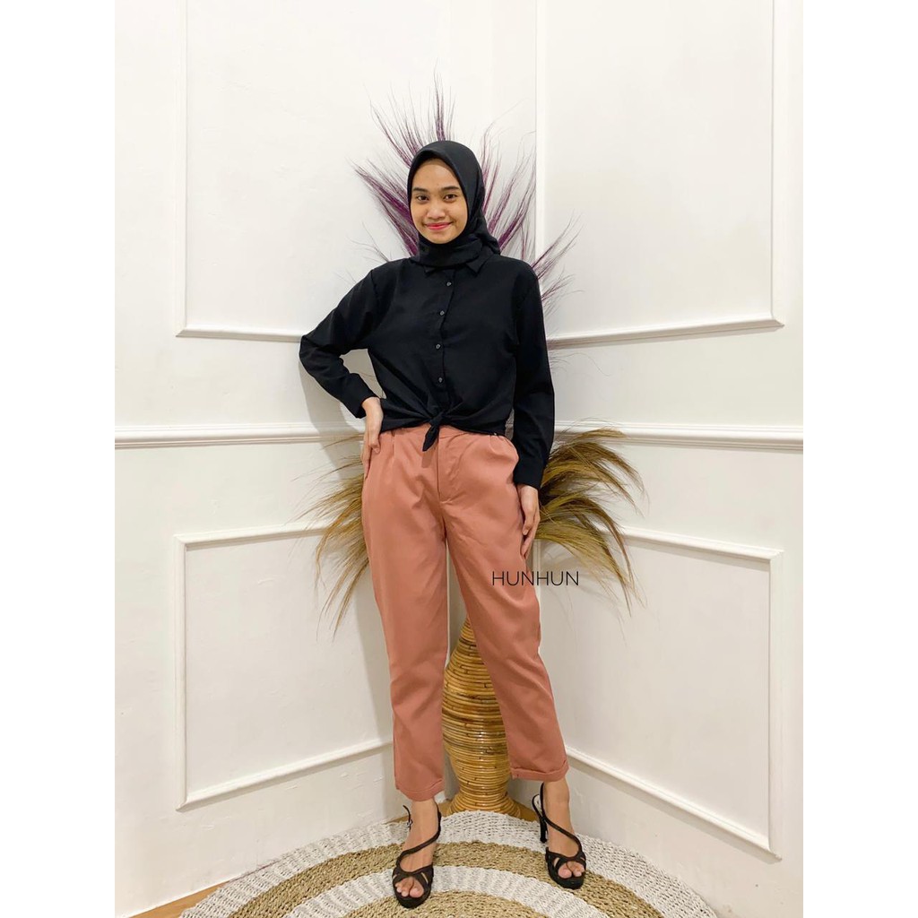 HUNHUN - (PREMIUM) BAGGY PANTS AMERICAN DRILL GRADE A CELANA PANJANG OOTD BAGGY PANTS HITAM ARMY WANITA