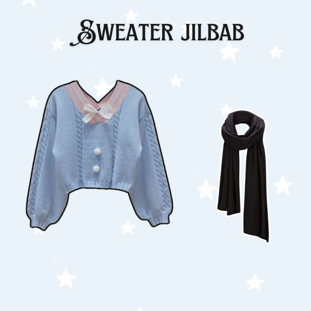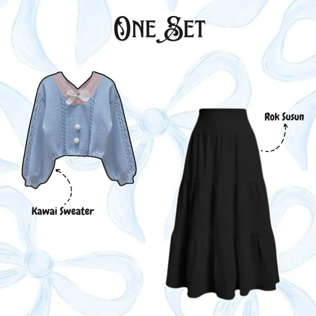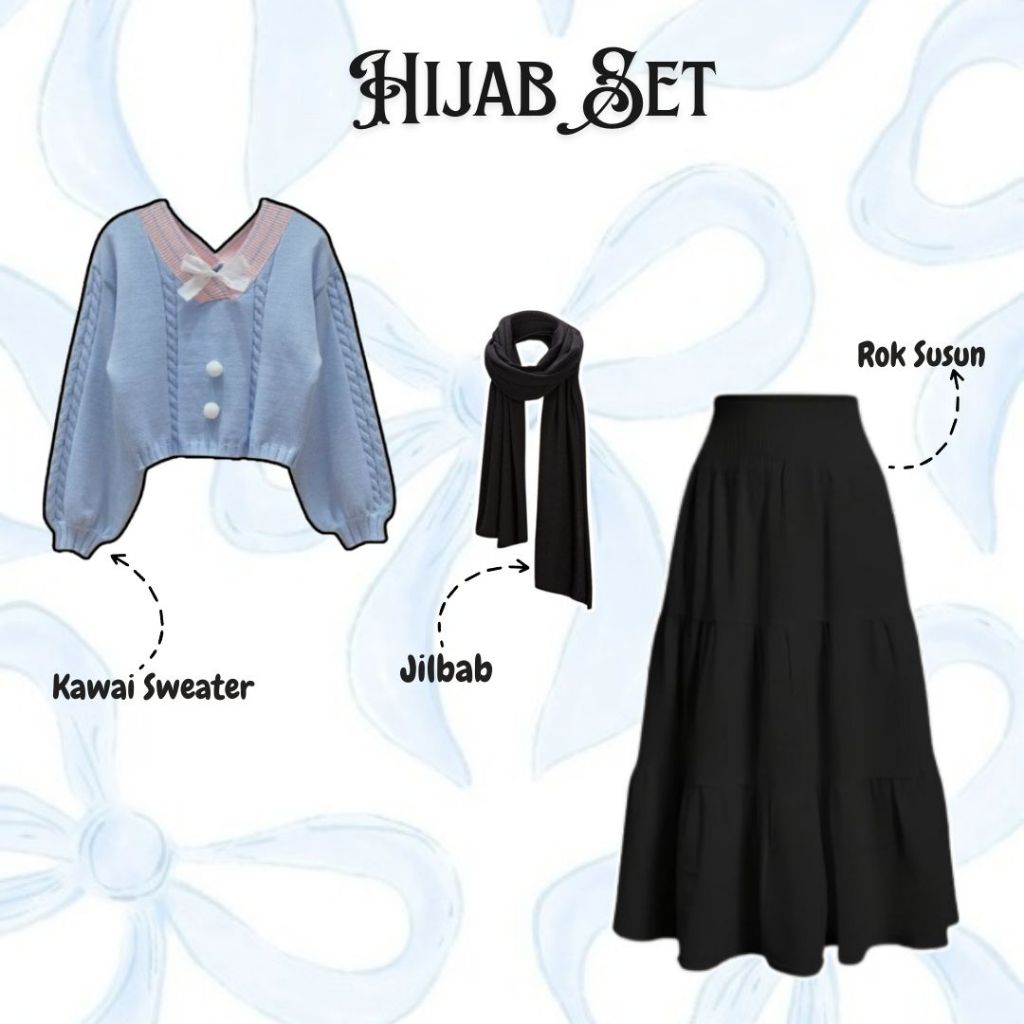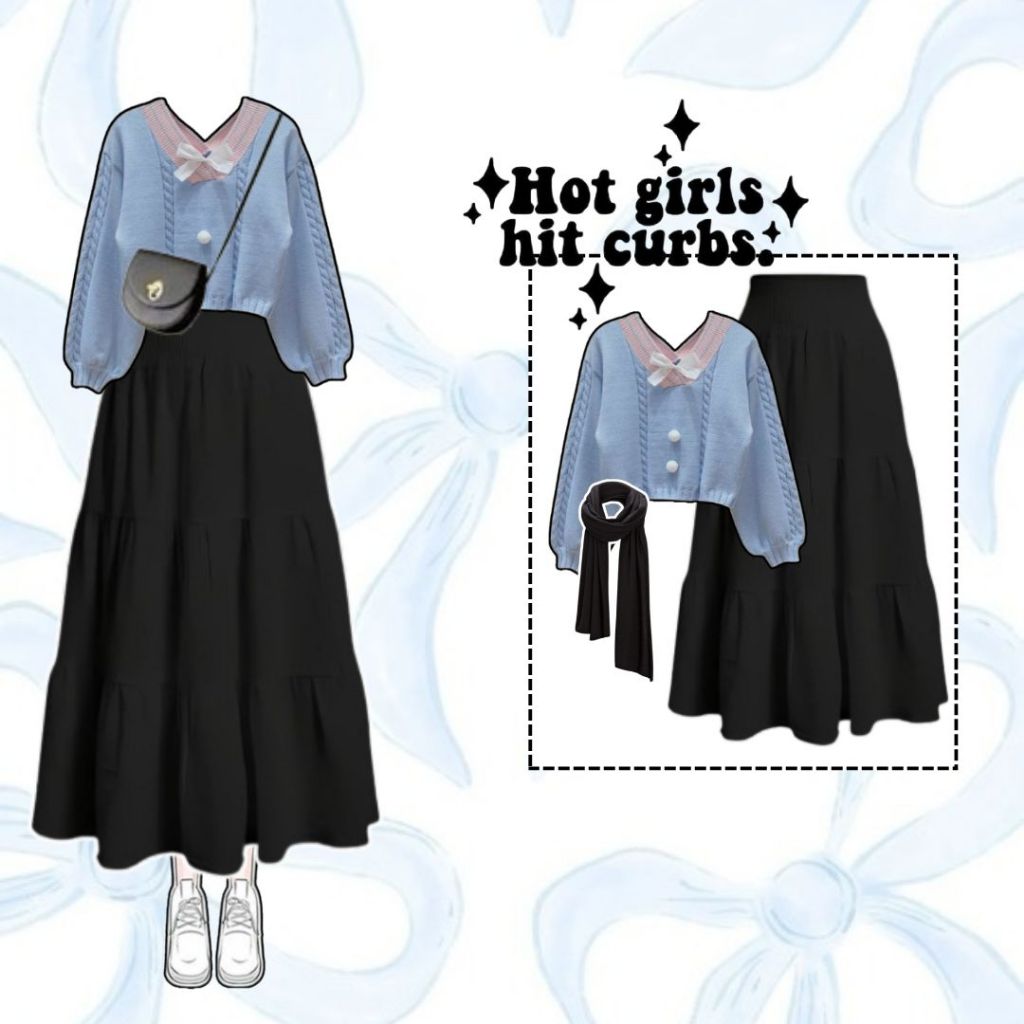 Risty Set Outfit Coquette ( Sweater + Rok Susun + Jilbab ) Setelan Remaja Oneset Wanita Hangout