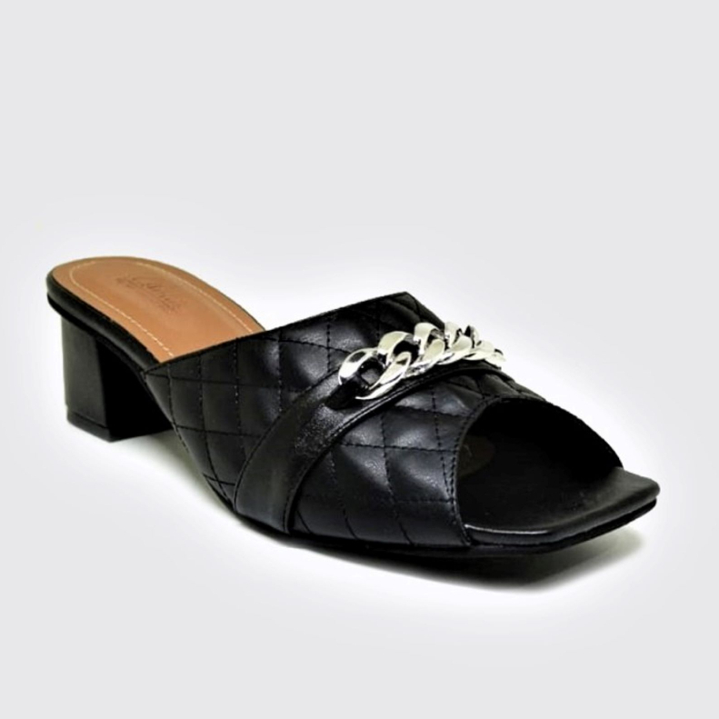 Sandal Wanita Heels Jumbo Size 40 41 42 43 44 45 DONNA Sandal Block Heel Hitam Matte Cocok Untuk Pesta Kondangan
