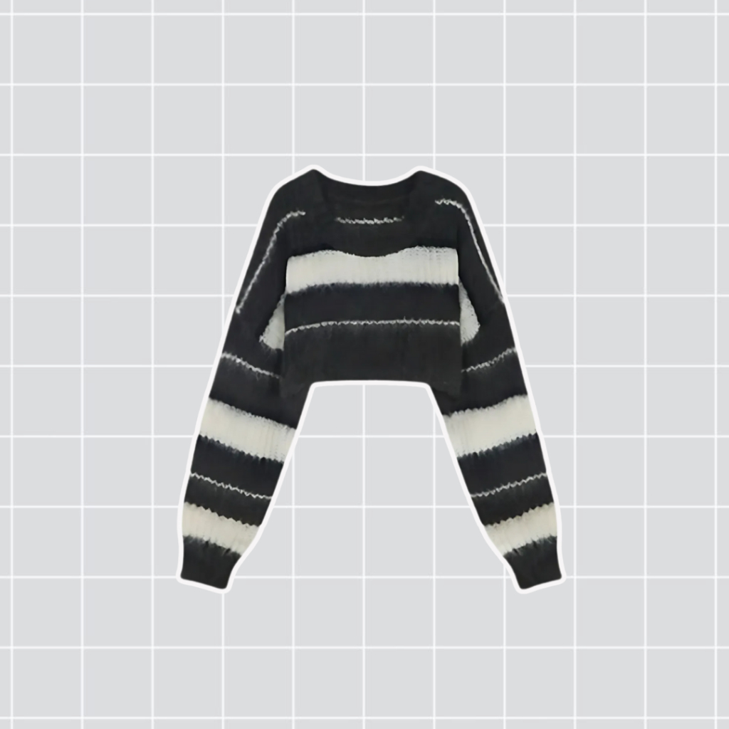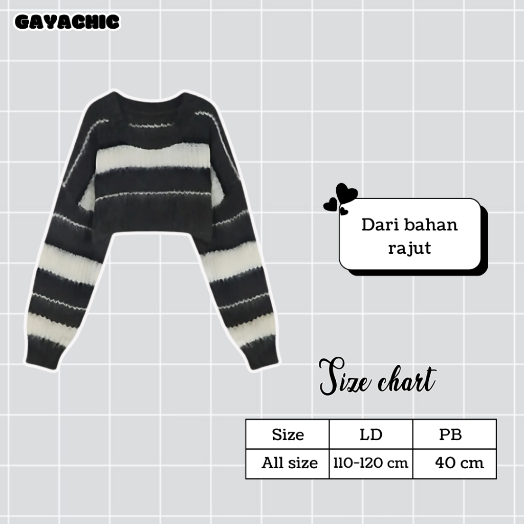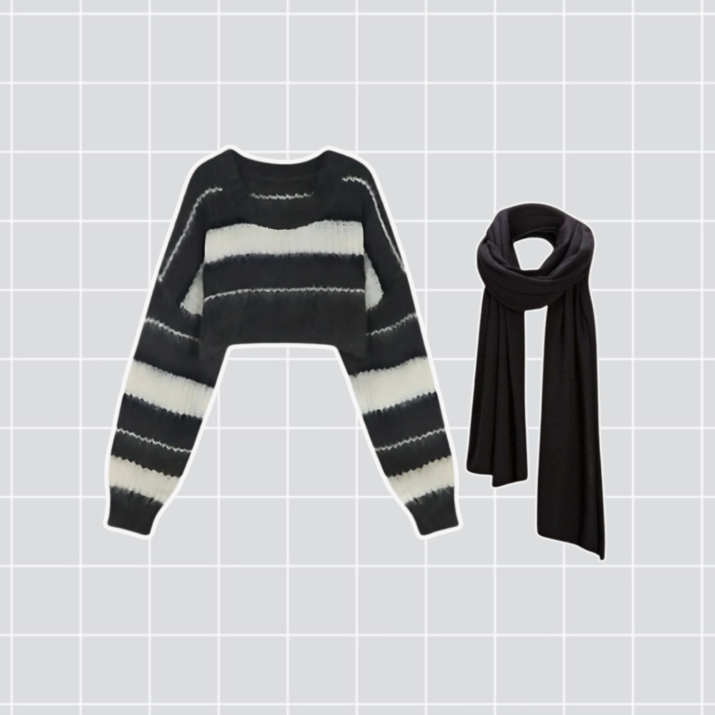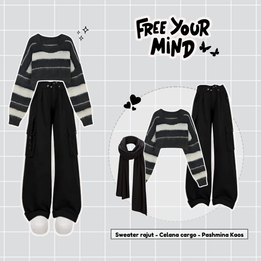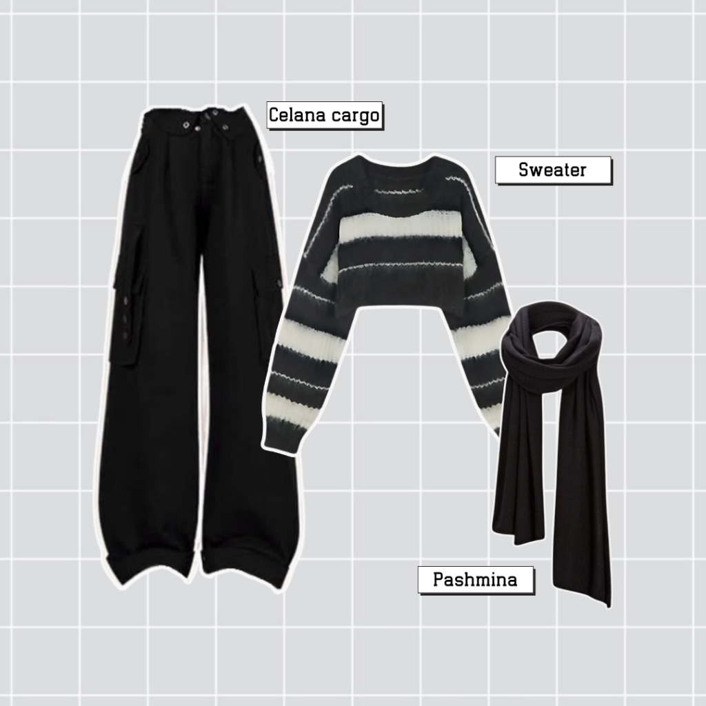 One Set Wanita Korean Style Atasan Sweater Rajut Stripe Crop Celana Cargo Pashmina Kaos Jersey BK57