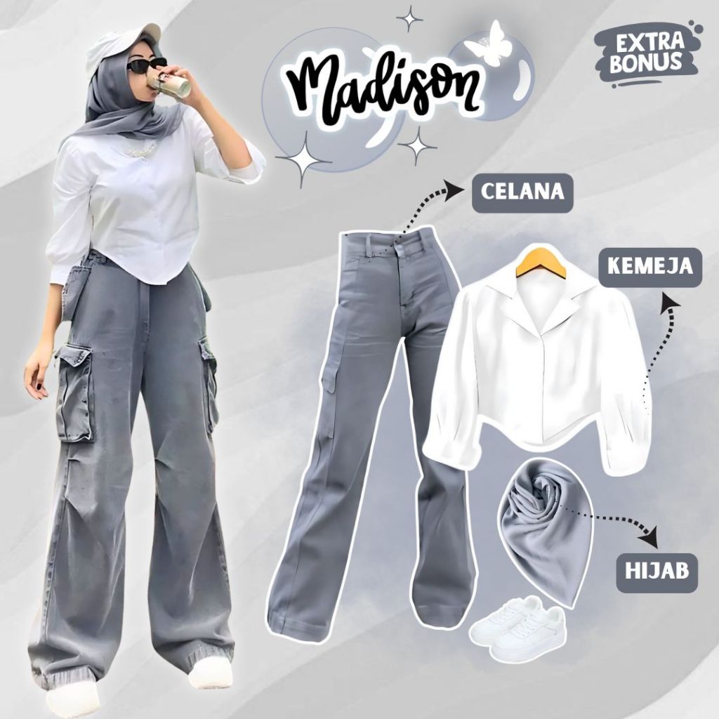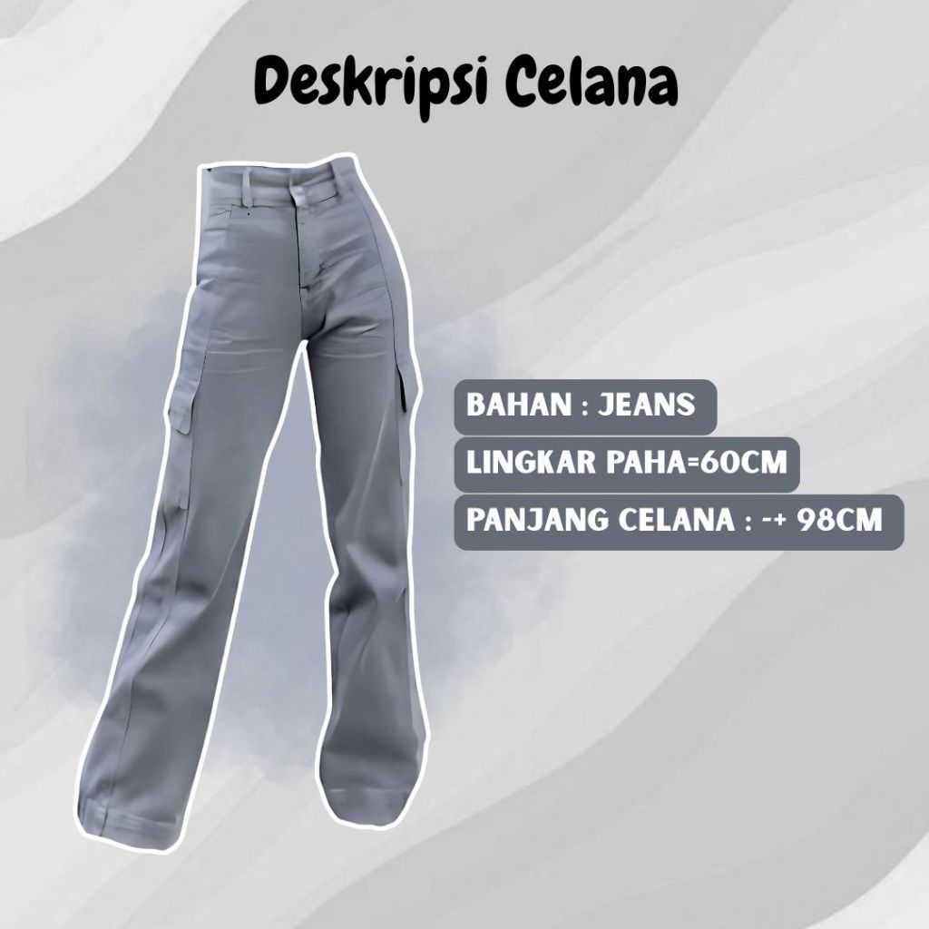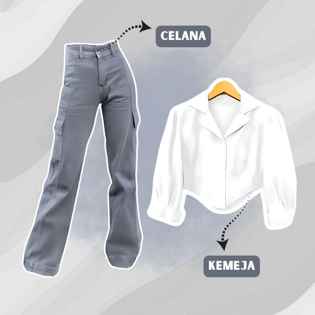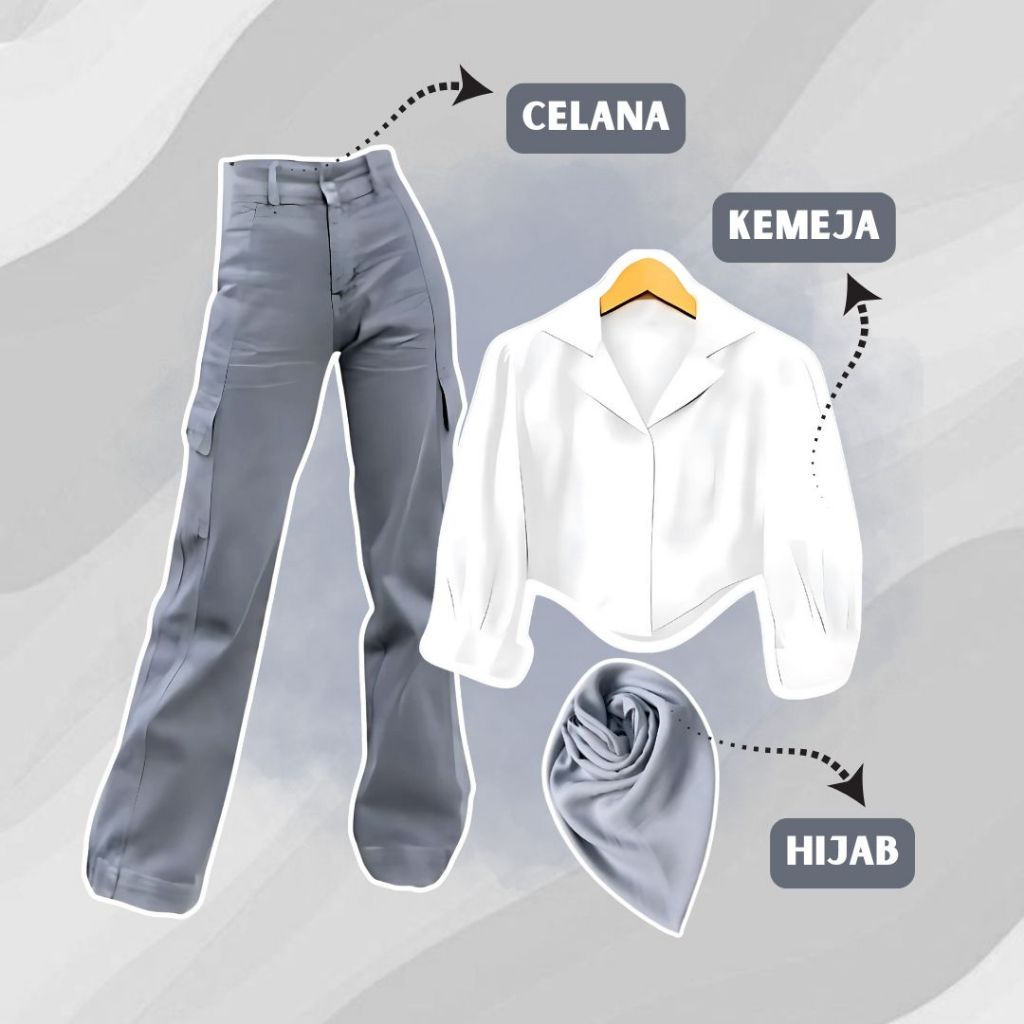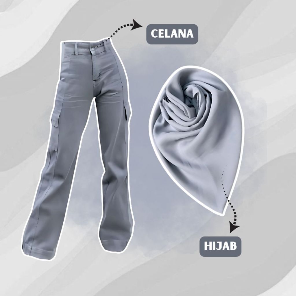 One set 3in1 kemeja crop celana jeans cargo kargo pant hijab segi empat | ootd outfit oneset wanita anak perempuan cewek remaja hijab modern kekinian korean style hangout liburan ngopi nongkrong kalcer stargirl y2k streetwear kuliah naik gunung KR08