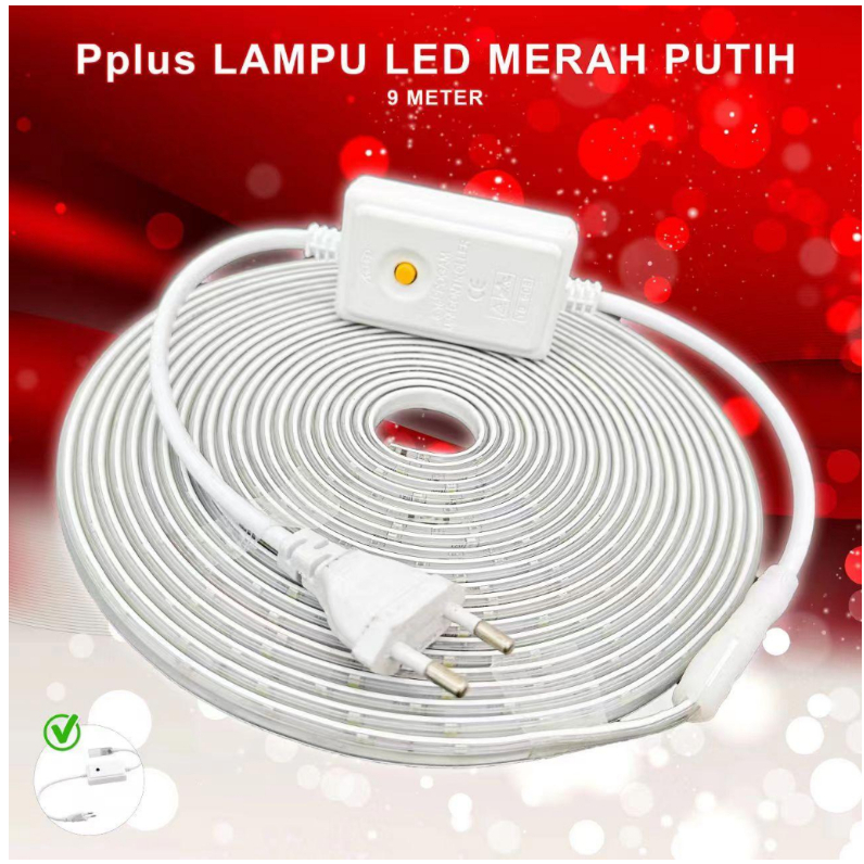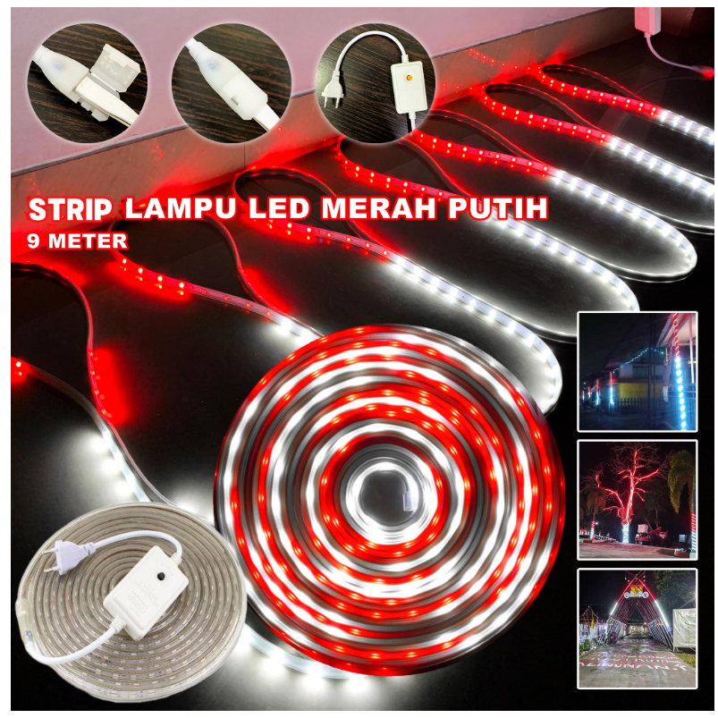 Lampu LED Strip Selang paket merah putih 3528 2835 220V + Adaptor 8M Outdoor Led Strip Agustus Lampu