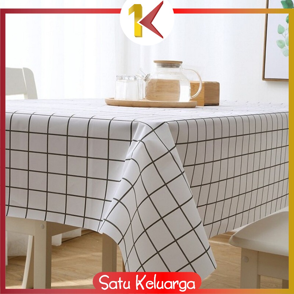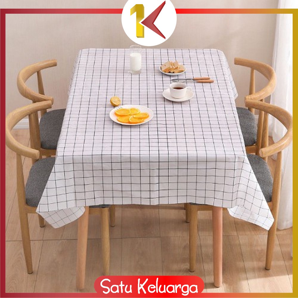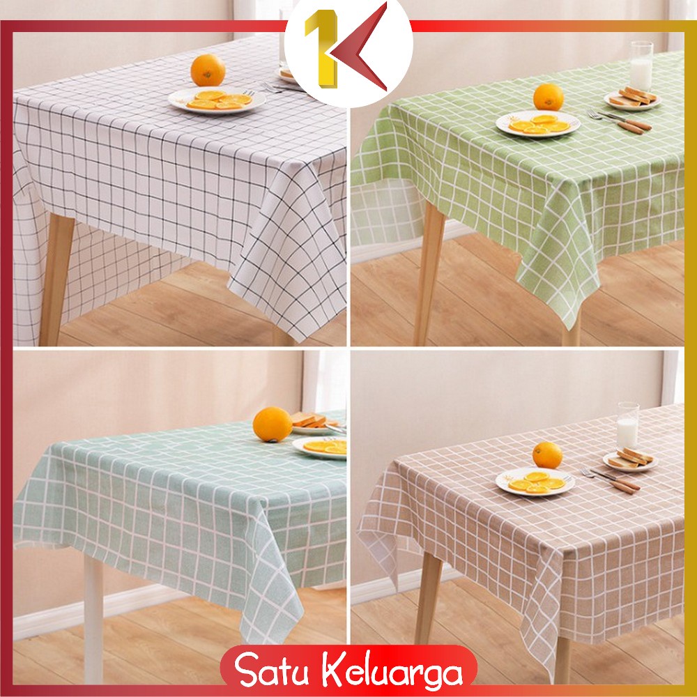 SK-C288 Taplak Meja Anti Air Motif Kotak-Kotak Bahan PEVA / Alas Meja Makan / Taplak Meja Ruang Tamu Persegi Panjang