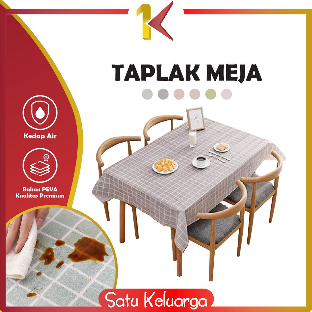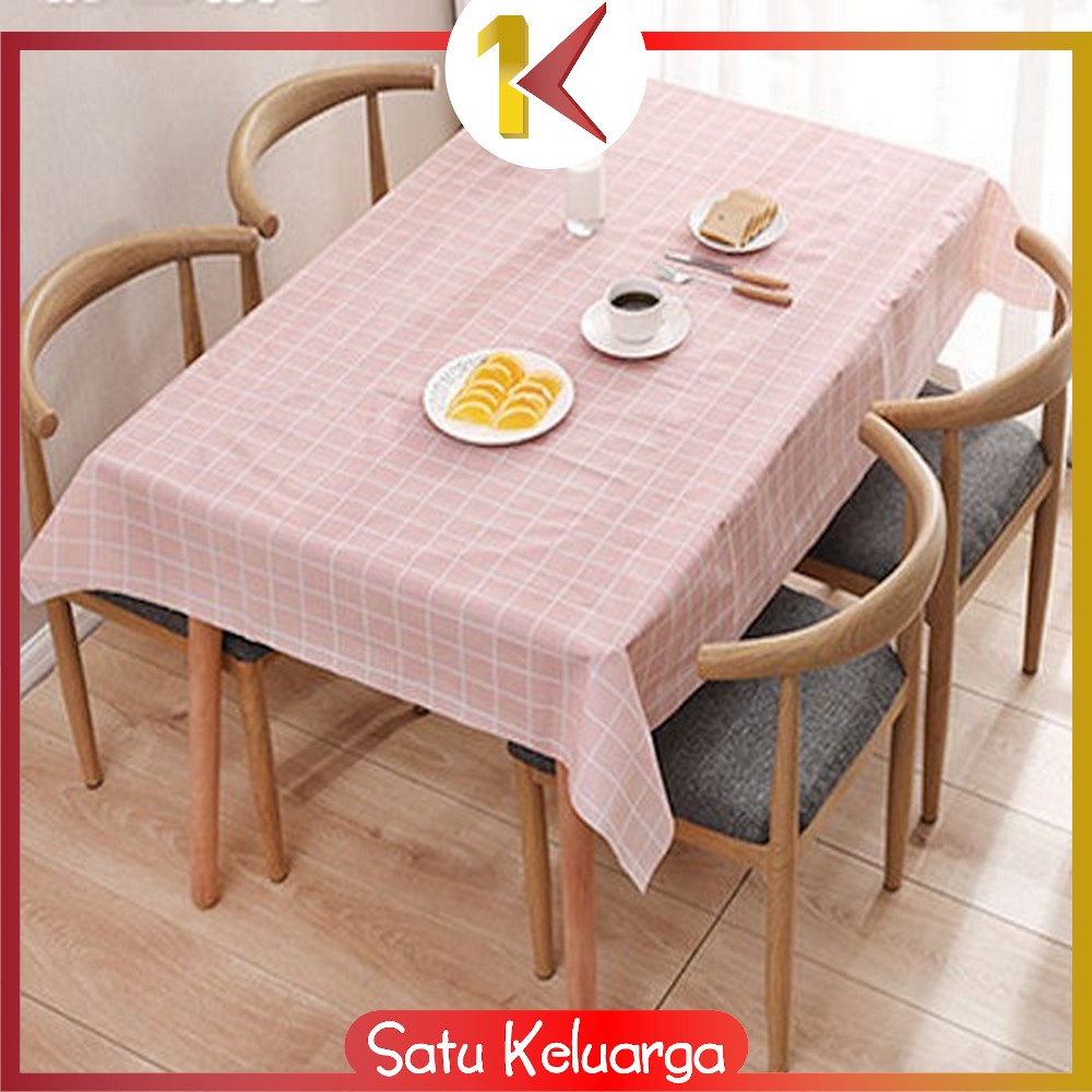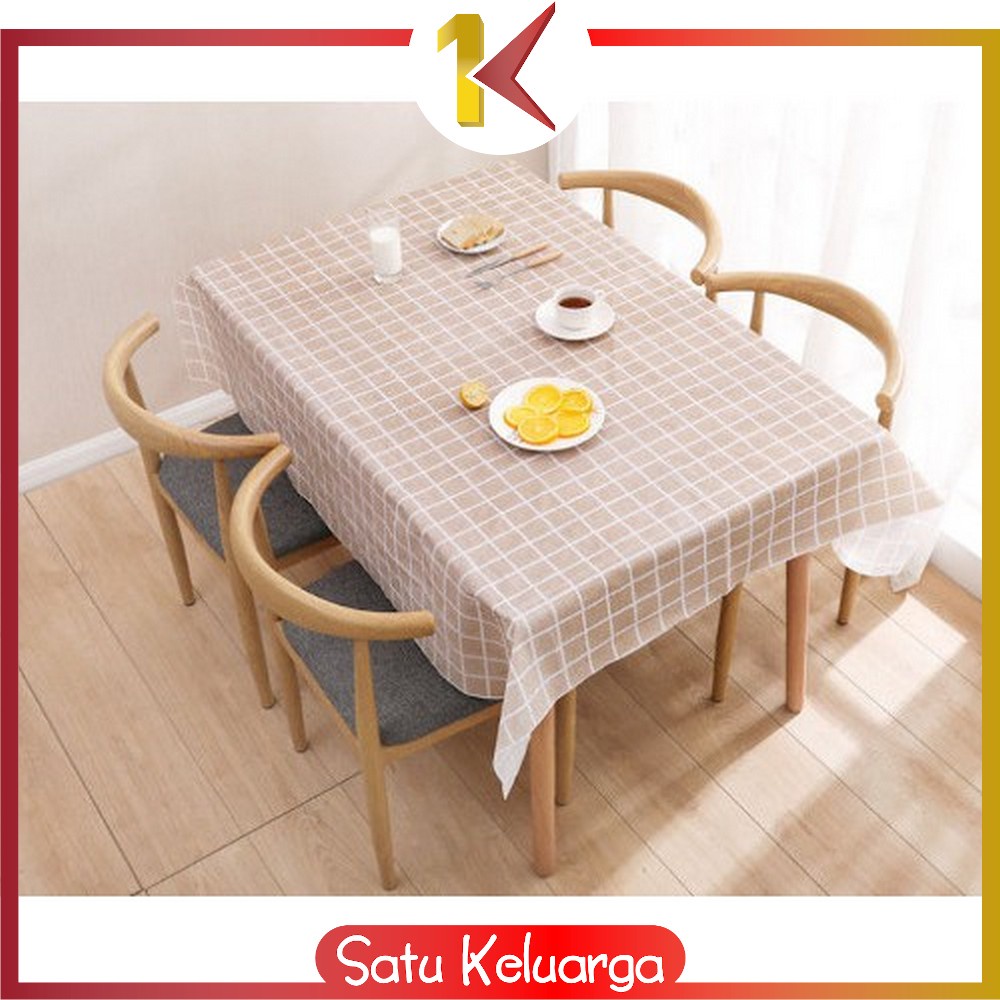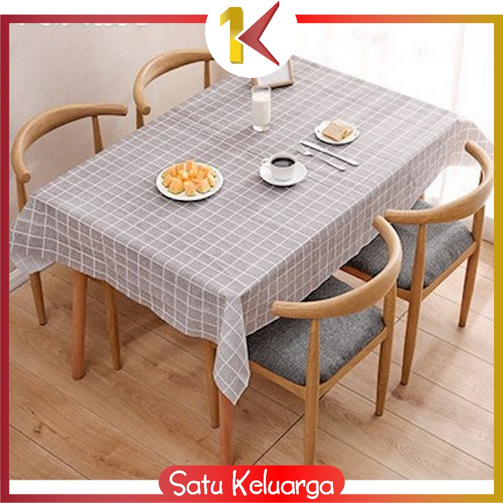 SK-C288 Taplak Meja Anti Air Motif Kotak-Kotak Bahan PEVA / Alas Meja Makan / Taplak Meja Ruang Tamu Persegi Panjang