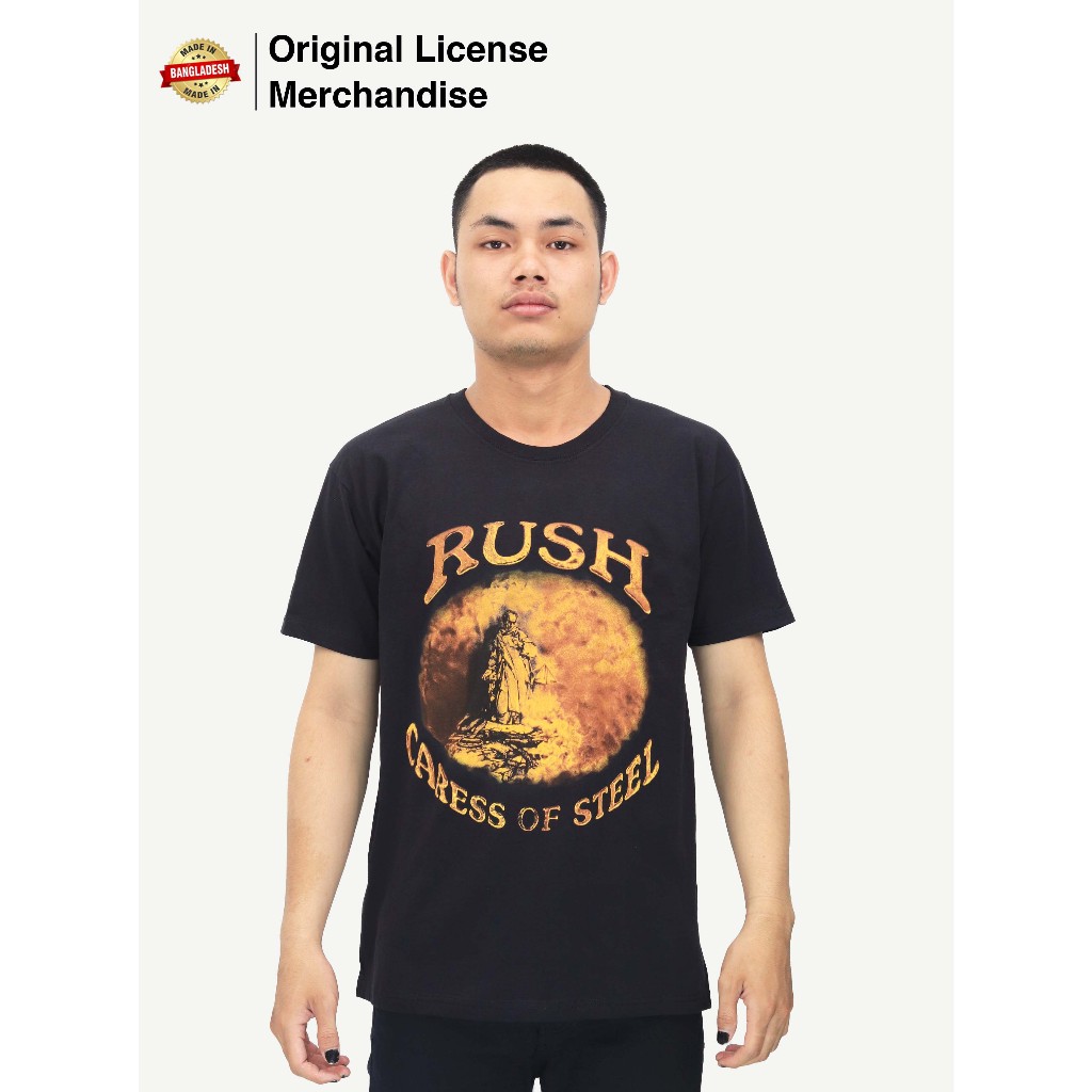 Kaos Baju Hitam Pria Wanita Pendek Casual Premium Motif Band Musik Rock RUSH Original Caress Of Steel