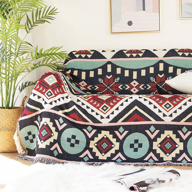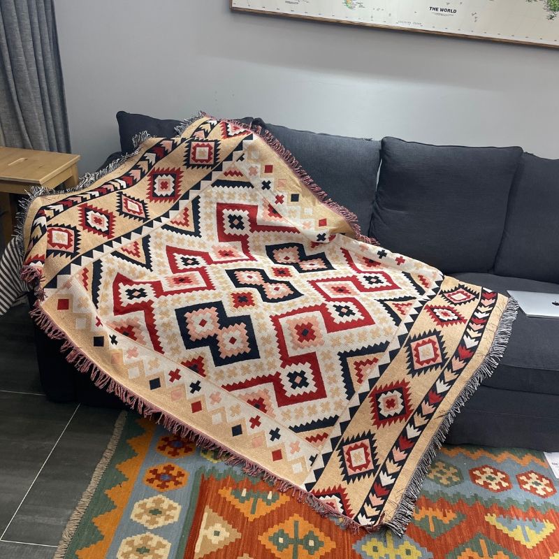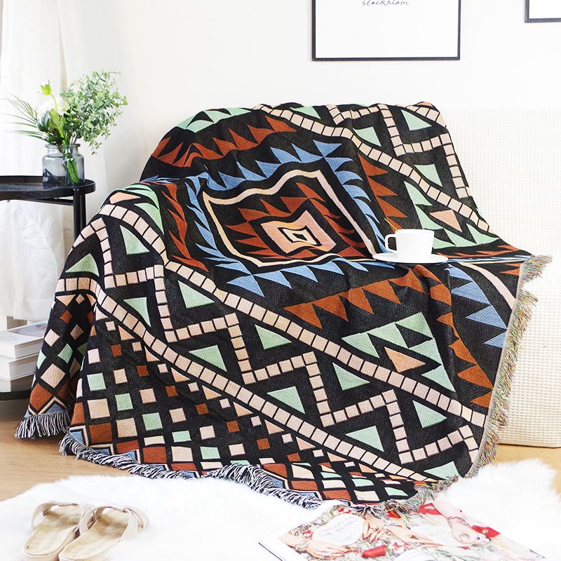 [New Design] Bohemian Blanket Sofa Carpet Geometri 160x130