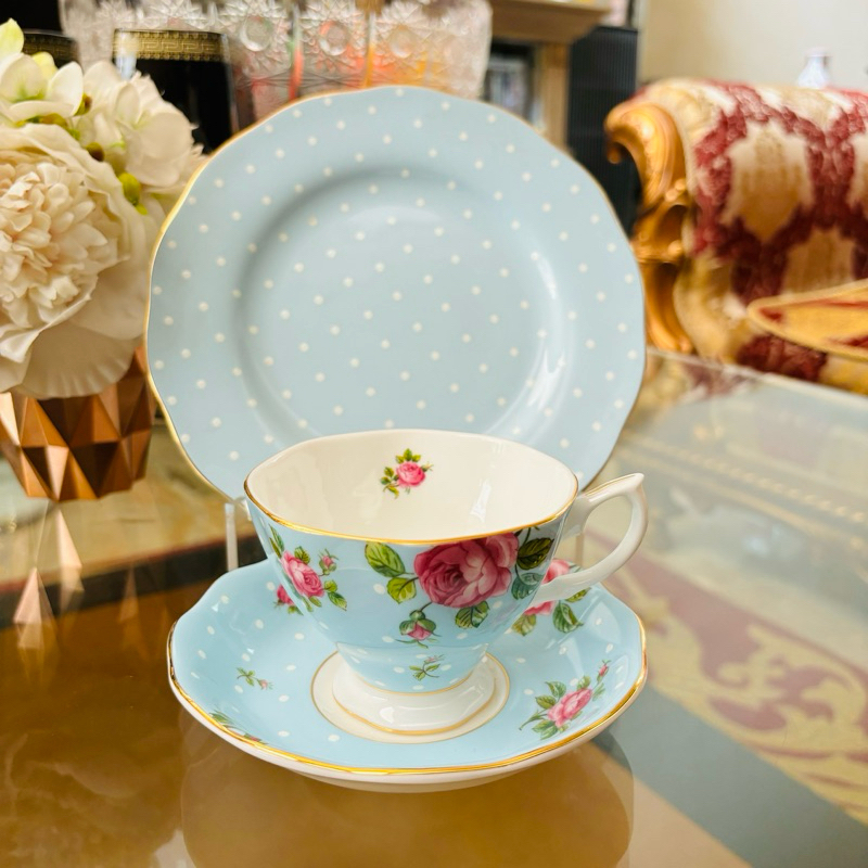 Trio Tea Cup Saucer Plate L 20 Cm Royal Albert Polka Blue - Rose Mewah Cantik