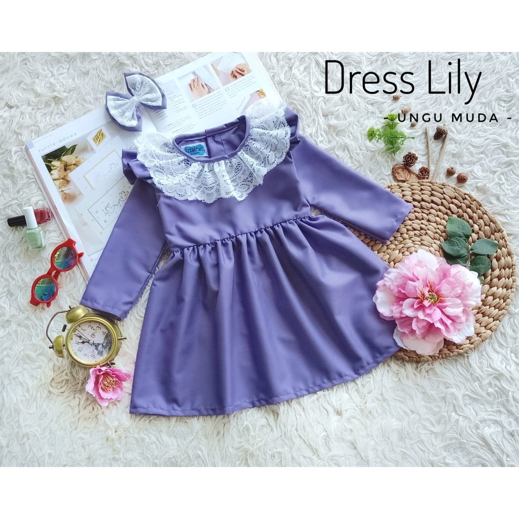BAJUNIK_PRODUSENBAJUANAK Baju Anak Dress Lily Warna Ungu Muda Usia Newborn-10 Tahun