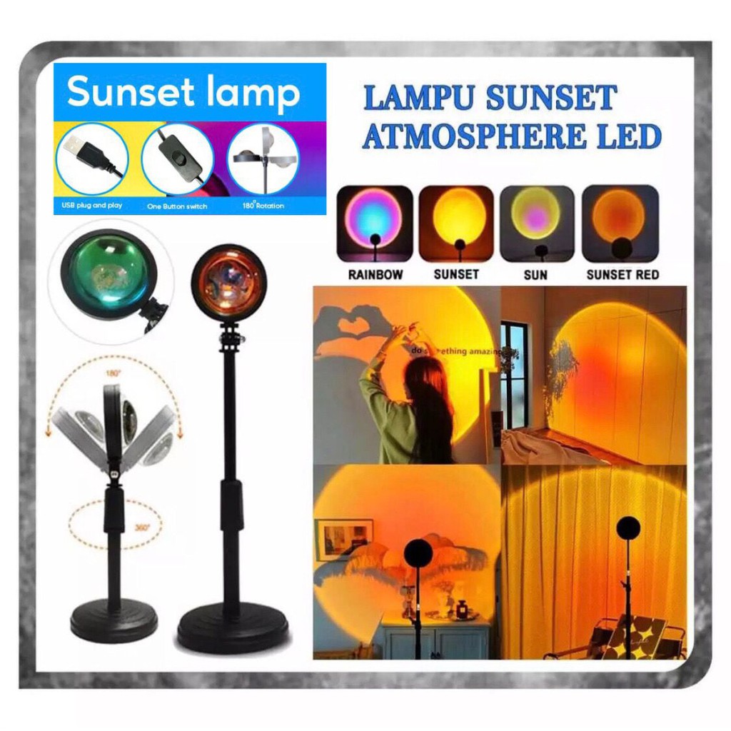 Lampu Sunset Proyektor LED Lampu Tidur Motif Matahari Terbenam Warna Rainbow Sunset Red Termurah