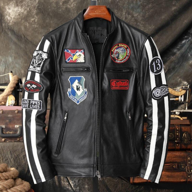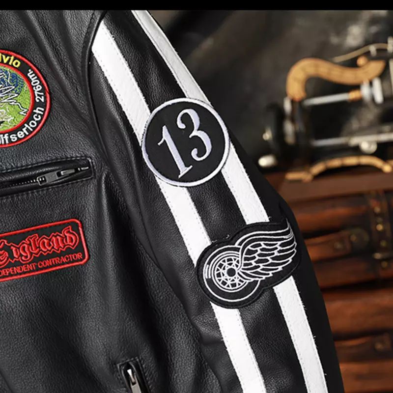 JAKET KULIT MOTOR - JAKET KULIT ASLI DOMBA - JAKET KULIT PRIA WARNA HITAM BORDIR RACING ORIGINAL
