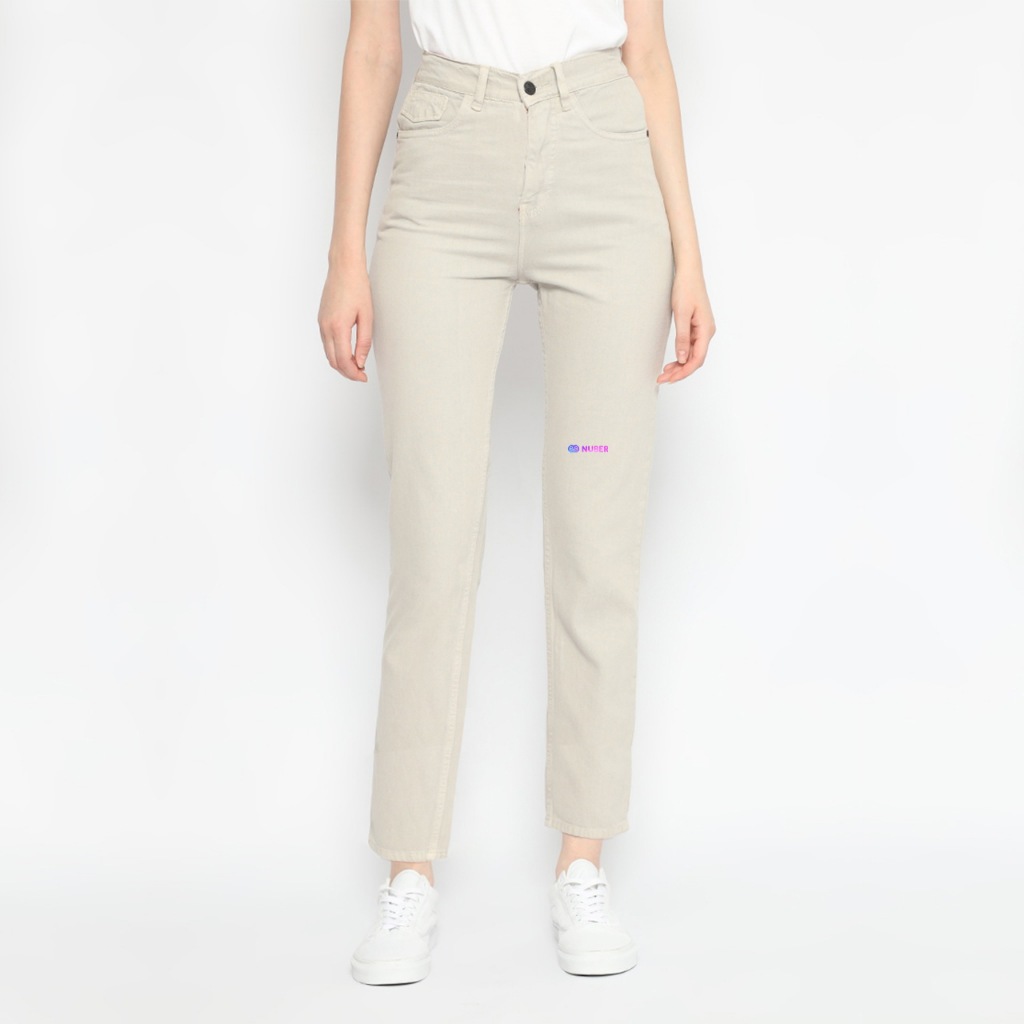 Nuber Mom Jeans High waist Boyfriend Pinggang Karet Celana Panjang Ren Hitam Biru Navy Snow