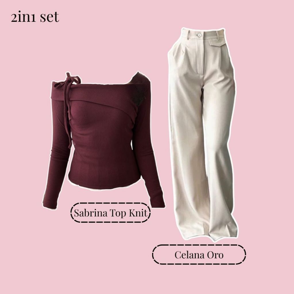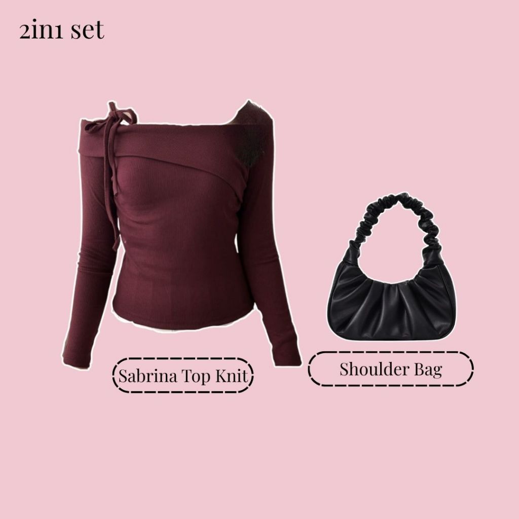 Set Outfit Women Sabrina Maroon (Top Knit, Celana, Tas) 3in1 Remaja-Dewasa Kekinian PREMIUM | FS125