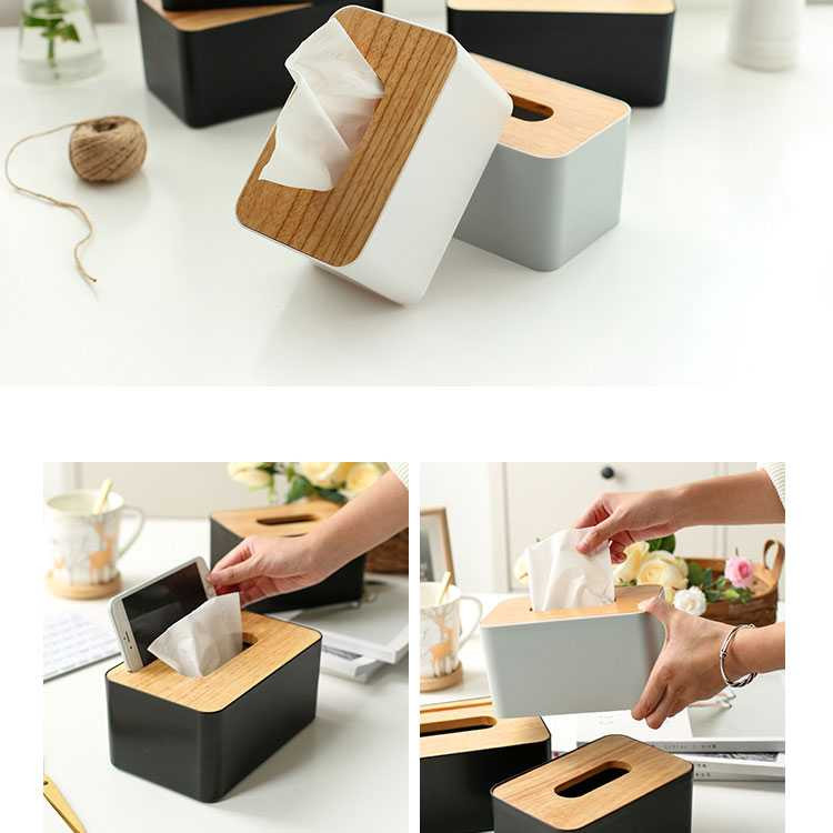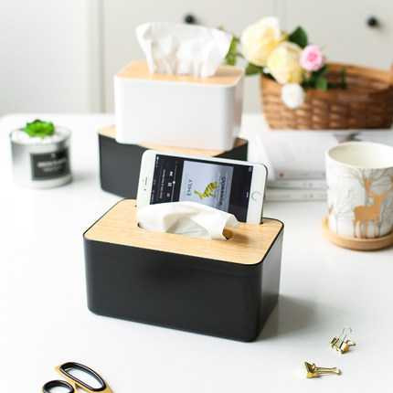TaffHOME Kotak Tisu Kayu Smartphone Holder and Tissue Box - ZJ005