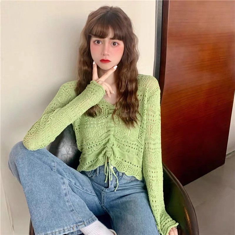 Blouse Korea Tarra Knit Crop Top Style 7307
