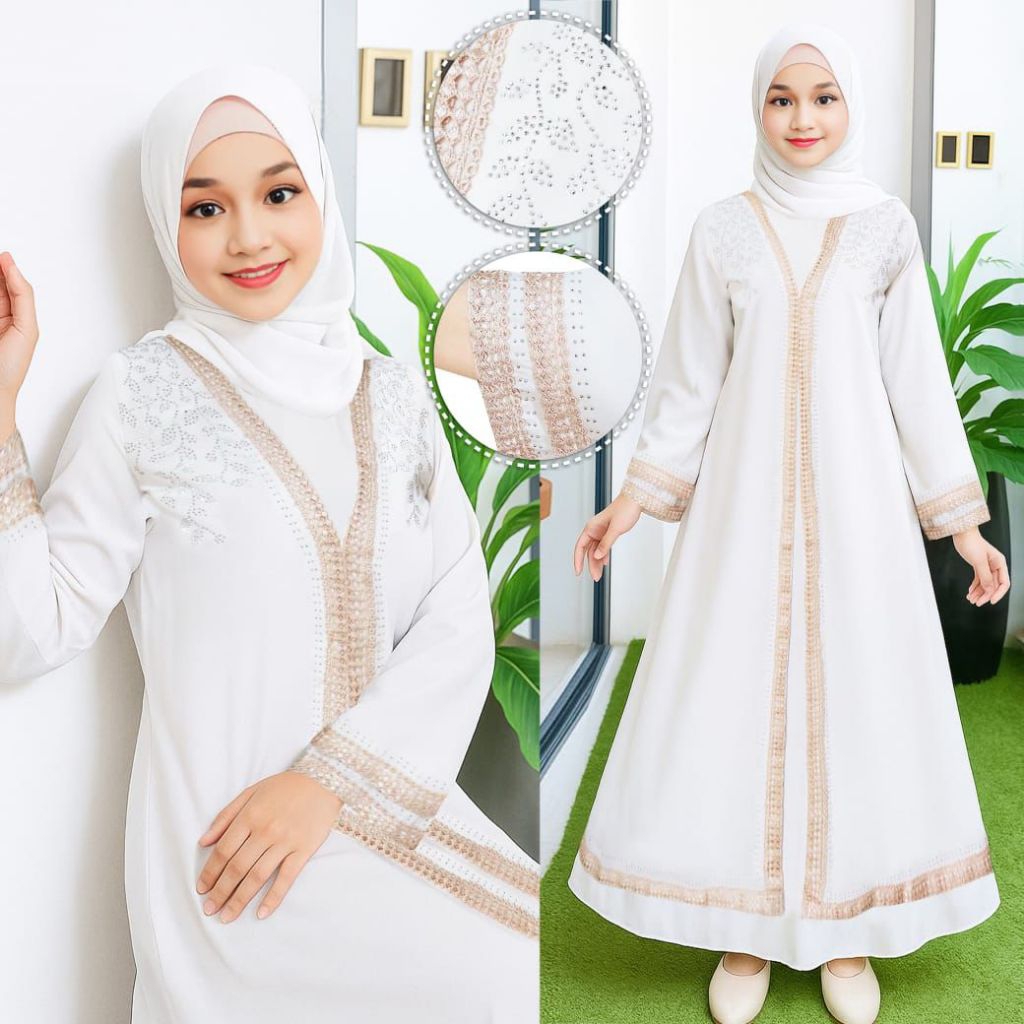 Gamis Abaya Anak Tanggung Putih 6 - 12 tahun Best seller (Realpict)