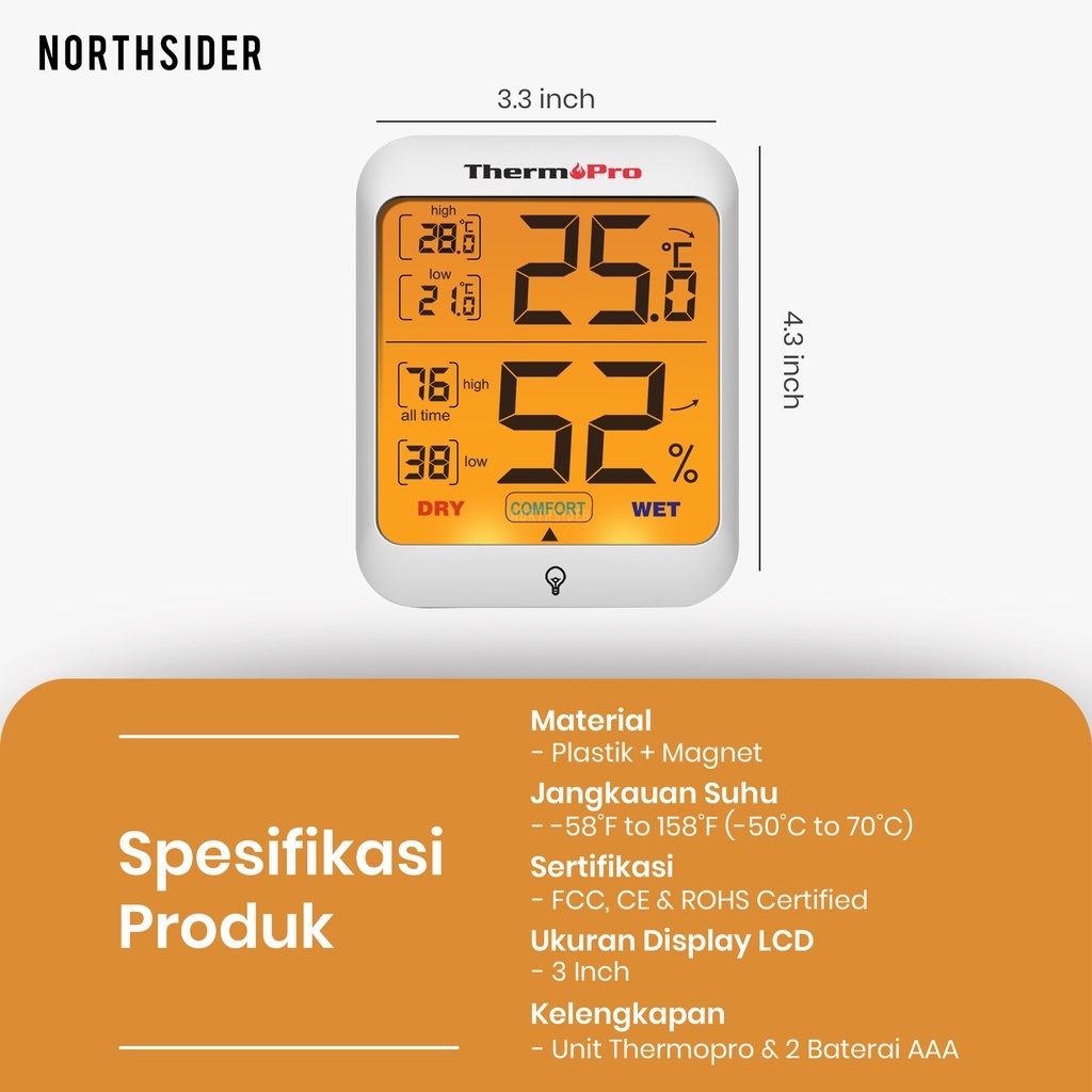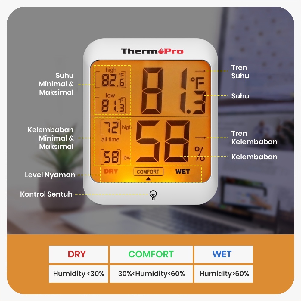 Thermohygrometer humidity | termometer suhu ruang thermopro TP53 + Sertifikat Kalibrasi