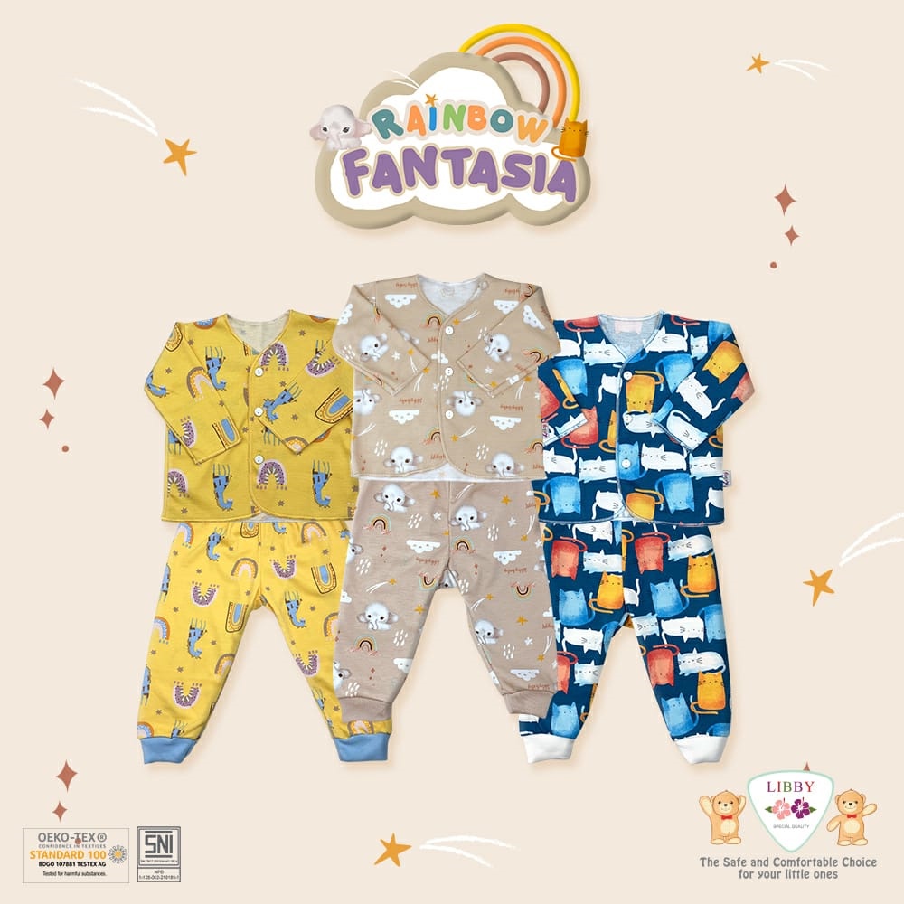 [TOMS] [BUNDLE HEMAT 3stel] [0-3m/3-6m] LIBBY - Baju PANJANG (Kancing Depan) + Celana PANJANG SANRIO Motif Terbaru Grosir / Stelan Piyama Bayi Anak ( 0-3 bln / 3-6 bln )