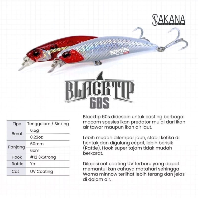LURE SAKANA BLACKTIP 60S MINNOW LURE