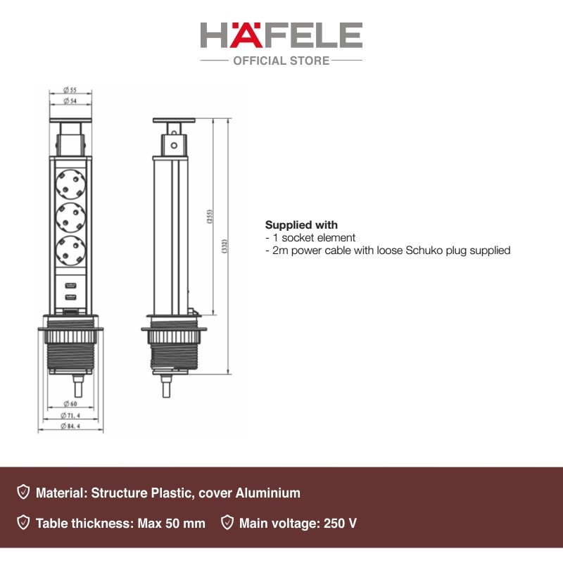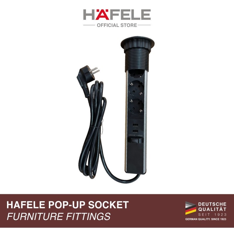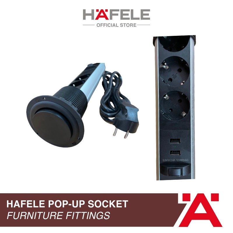 Hafele Pop-Up Socket Stop Kontak Tanam Meja Hitam 60 mm Colokan Kabel Usb
