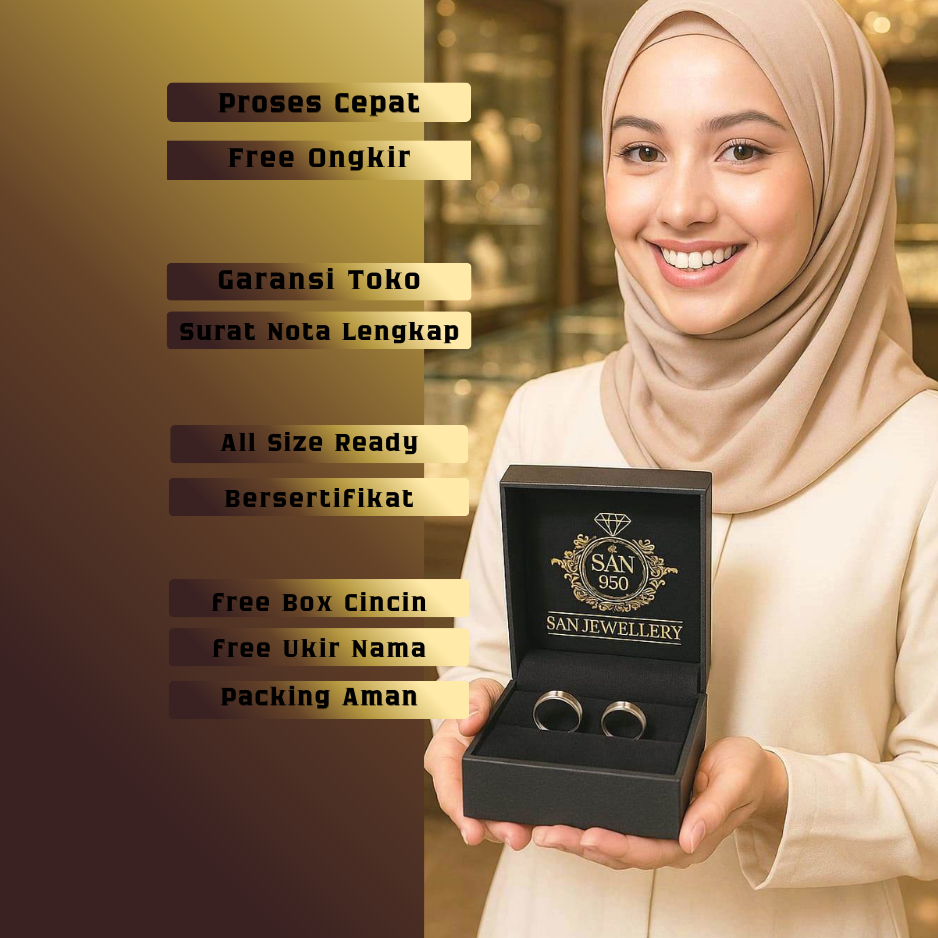 Cincin Nikah Couple Tunangan SAN950 Perak 950 Premium Platinum Palladium Free Box & Ukir Nama C653
