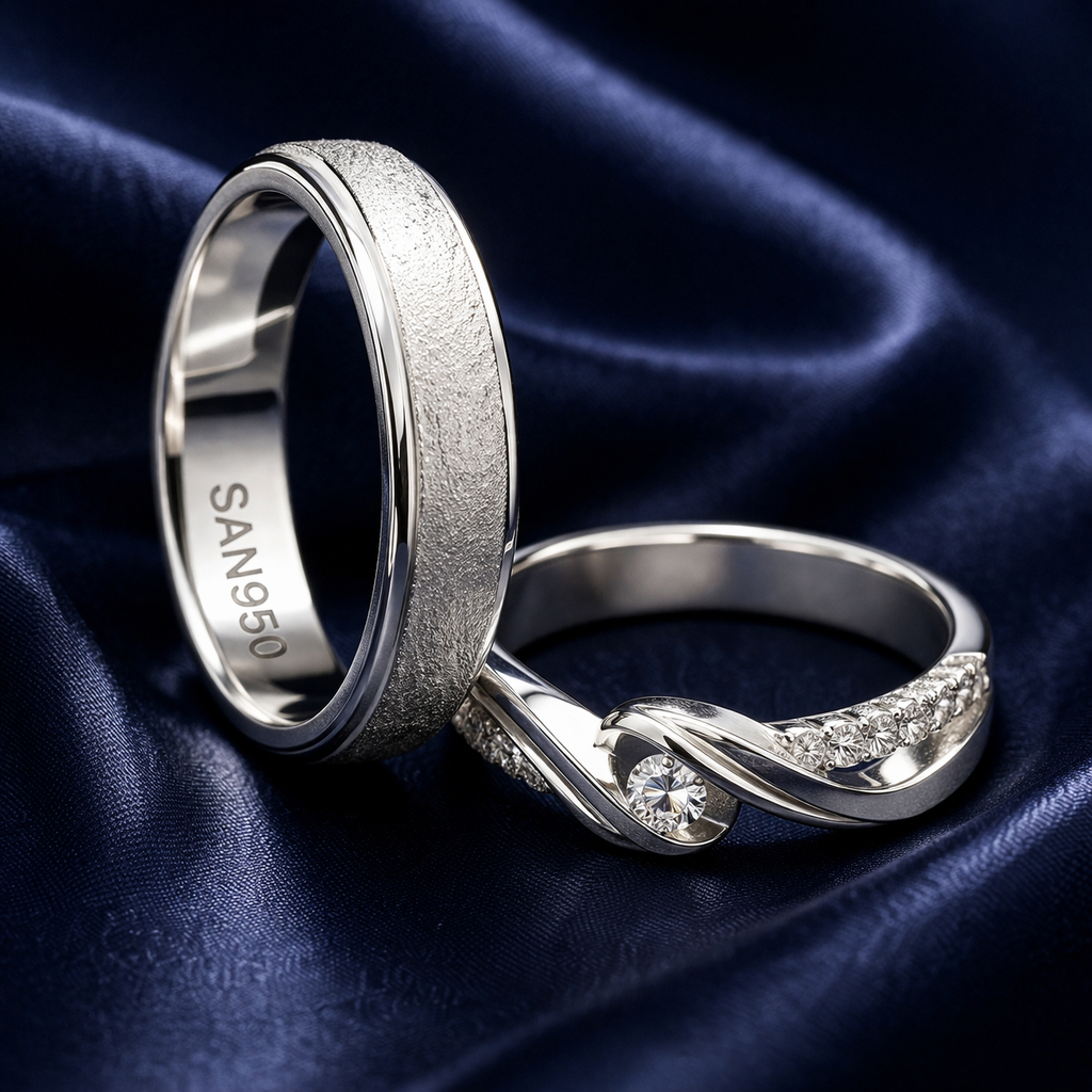 Cincin Nikah Couple Tunangan SAN950 C653 - Perak 950 Platinum Palladium - Free Box & Ukir Nama