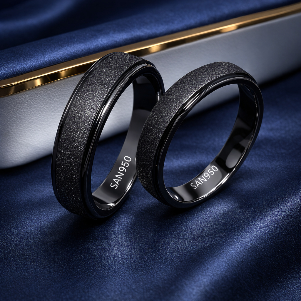 SAN950 Cincin Couple Hitam Perak 950 H87 | Cincin Nikah & Tunangan Black Series