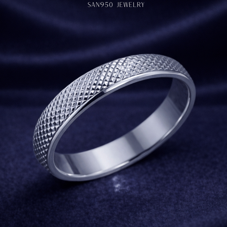 Cincin Nikah Tunangan Kawin Pria SAN950 S65 - Pilihan Palladium Platinum Perak - Custom Handmade
