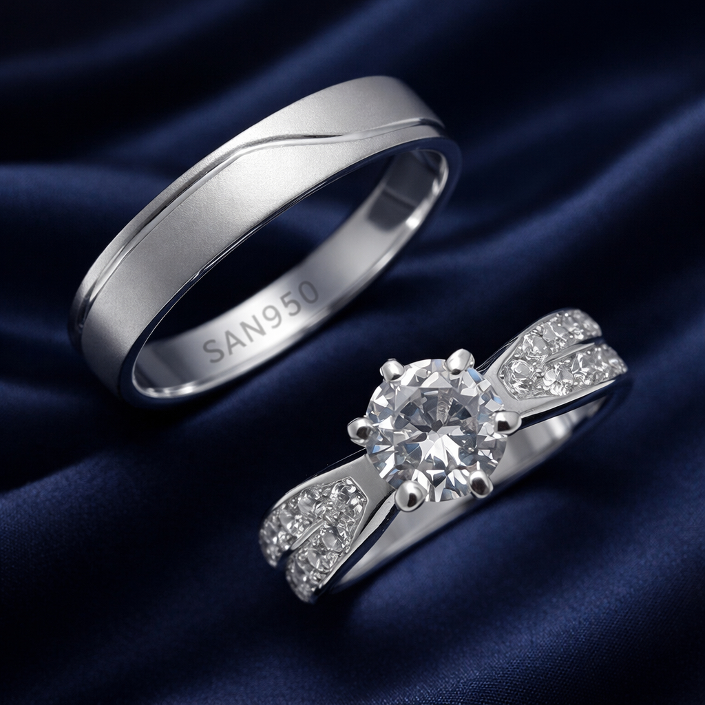 Cincin Tunangan Couple SAN950 C760 - Perak 950 Platinum Palladium | Custom Handmade Free Box Elegan