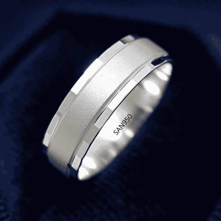Cincin Nikah Pria Perak 950 SAN950 [P1211]– Desain Motif Garis | Free Ukir Nama + Box Elegan