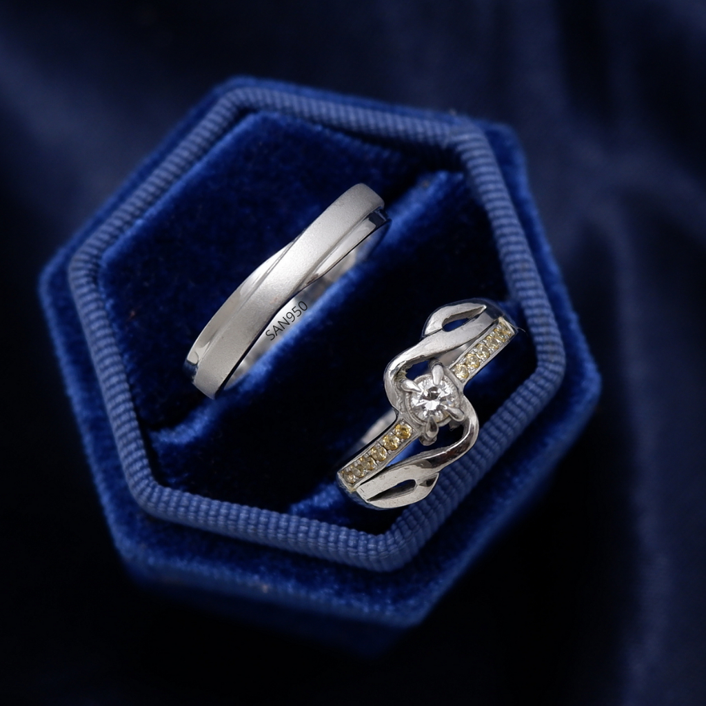 SAN950 Cincin Nikah Couple Palladium C5131 Handmade – Desain Luxury & Elegan | Free Ukir Nama & Box Eksklusif