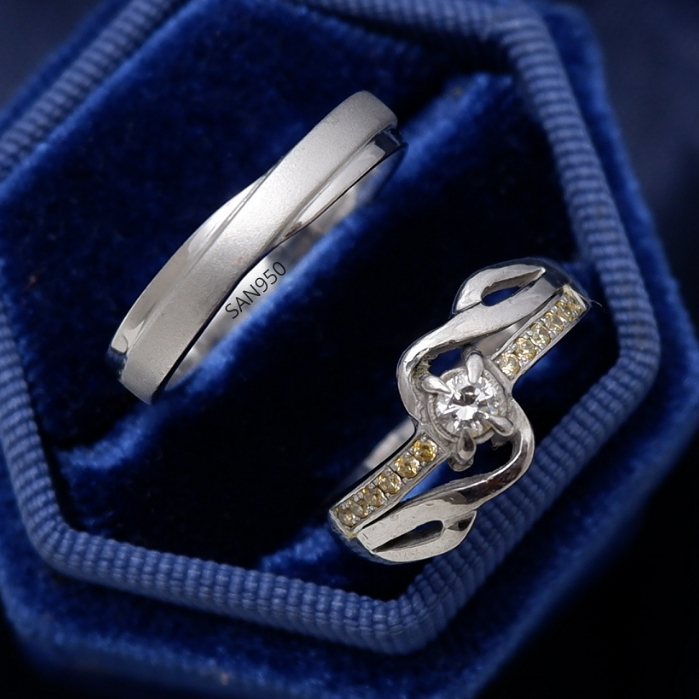 Cincin Nikah Couple Palladium SAN950 C5131 Premium Handmade - Luxury & Elegan | Free Ukir Nama & Box