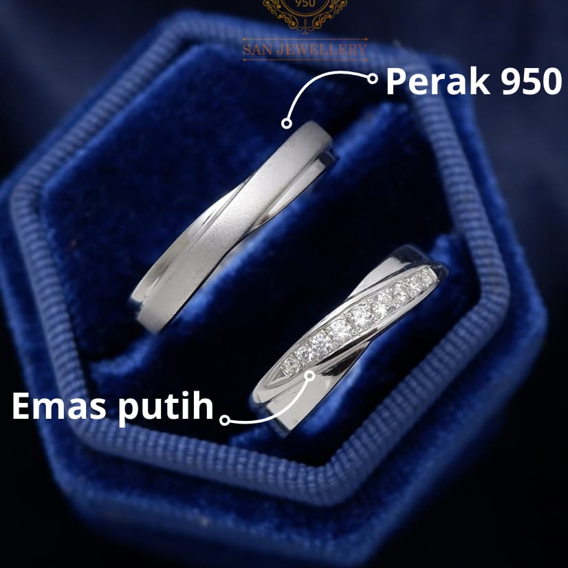 SAN950 Cincin Kawin Couple Handmade C5133 - Emas Putih & Perak | Custom Size ,Free Box ,Ukir Nama