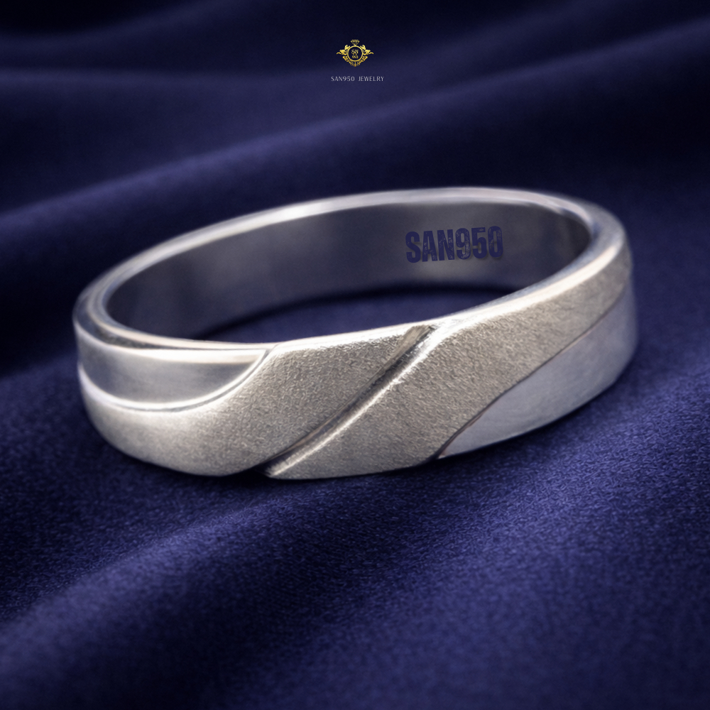 SAN950 Cincin Tunangan Pria Perak 950 S588 | Custom Emas Putih, Palladium & Platinum