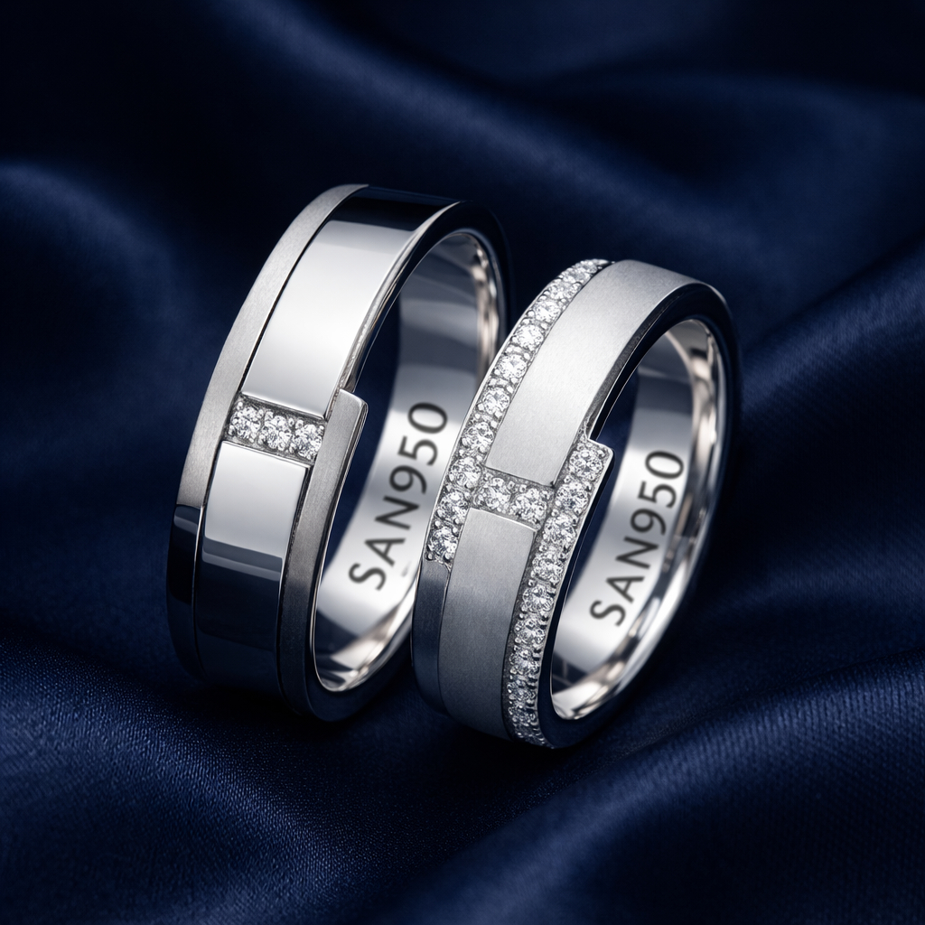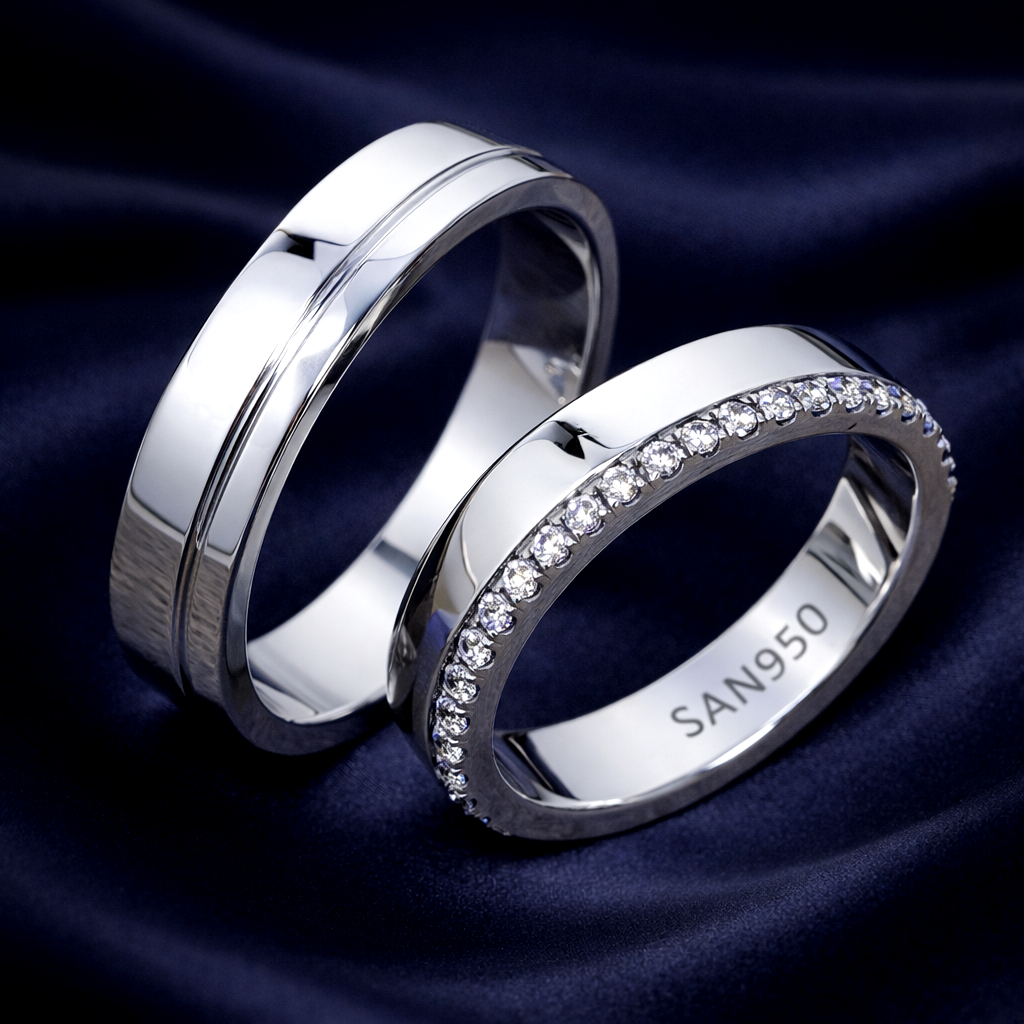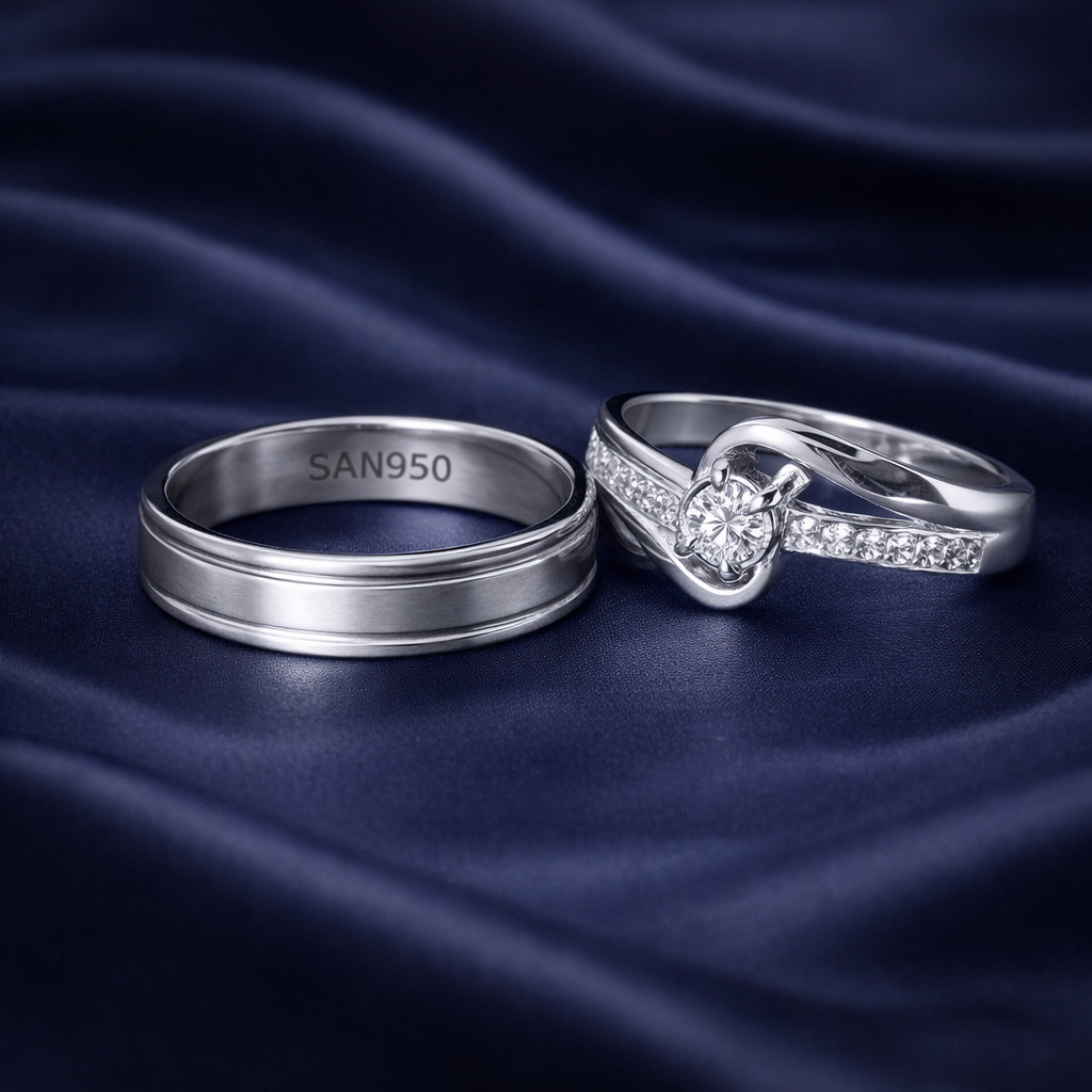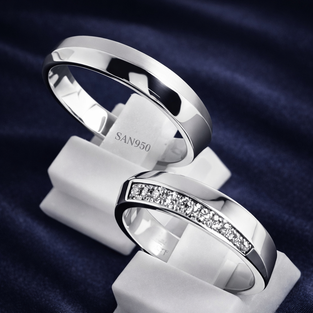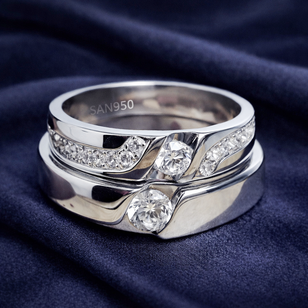 Cincin Nikah Tunangan Couple SAN950 C132 - Perak 950 Palladium Platinum Original - Custom Handmade