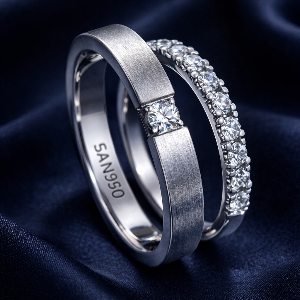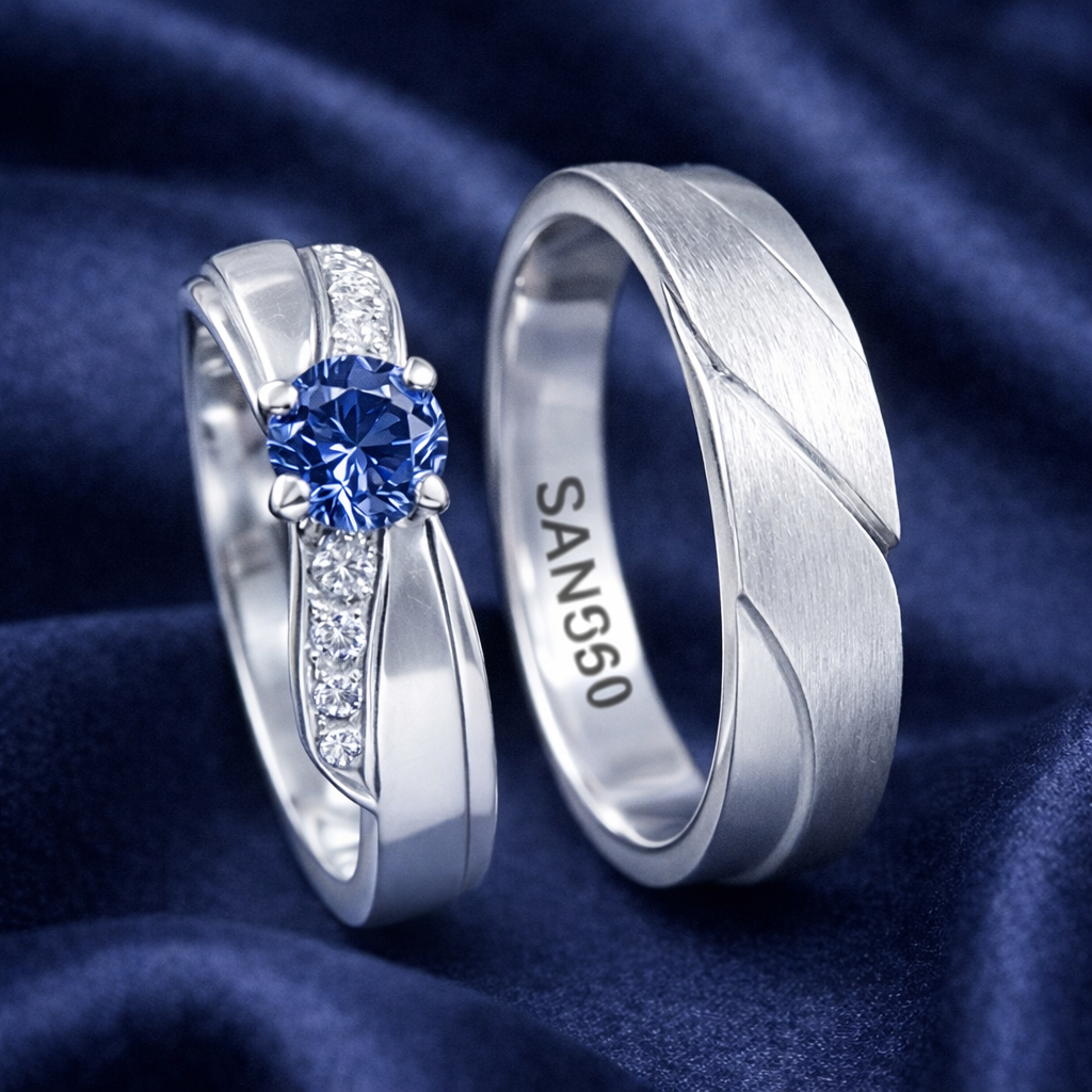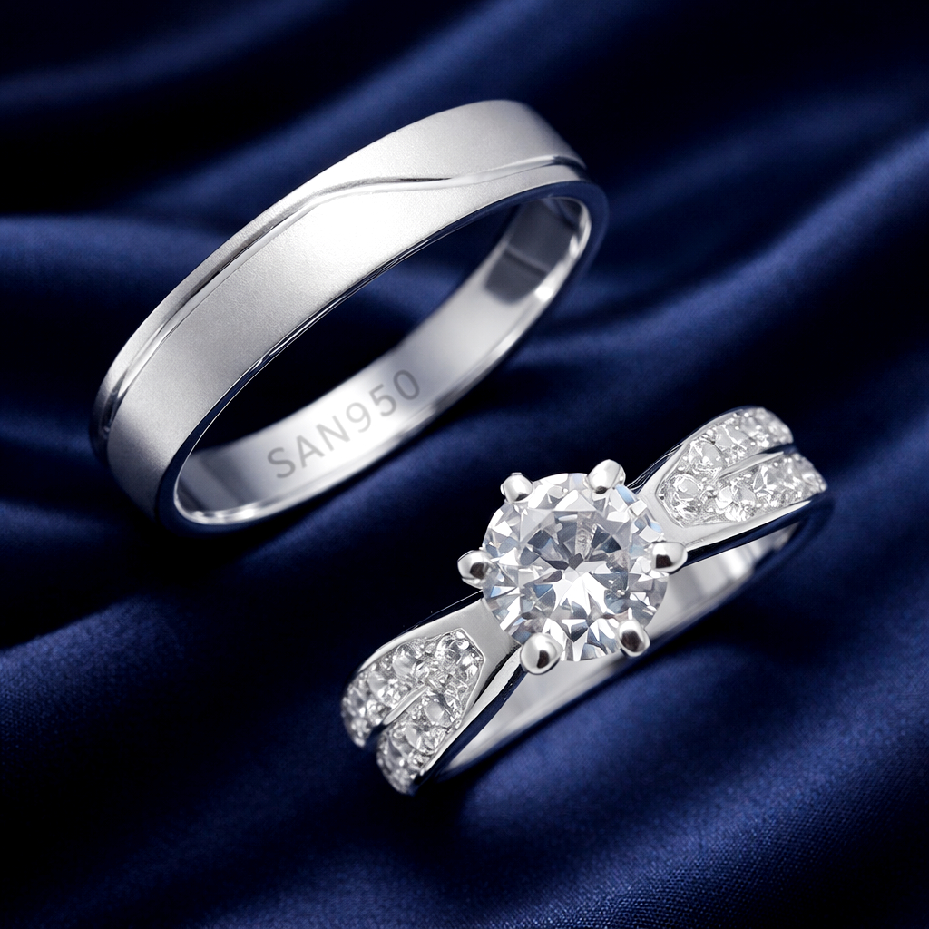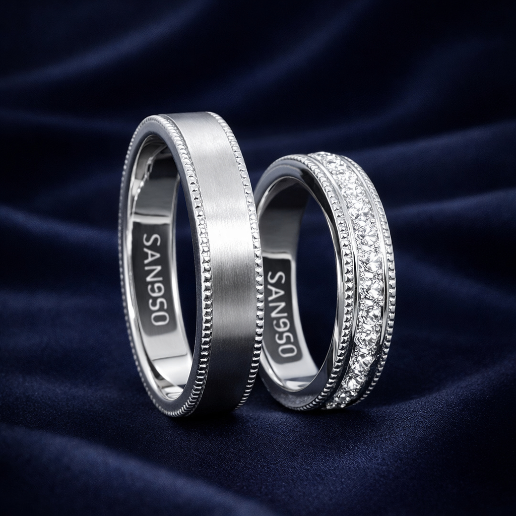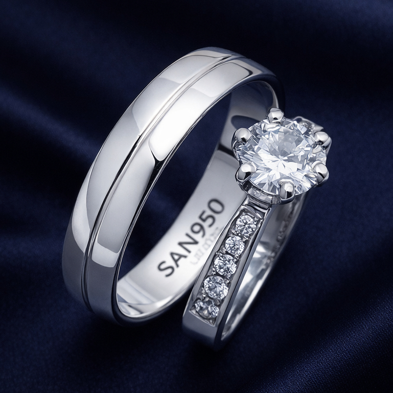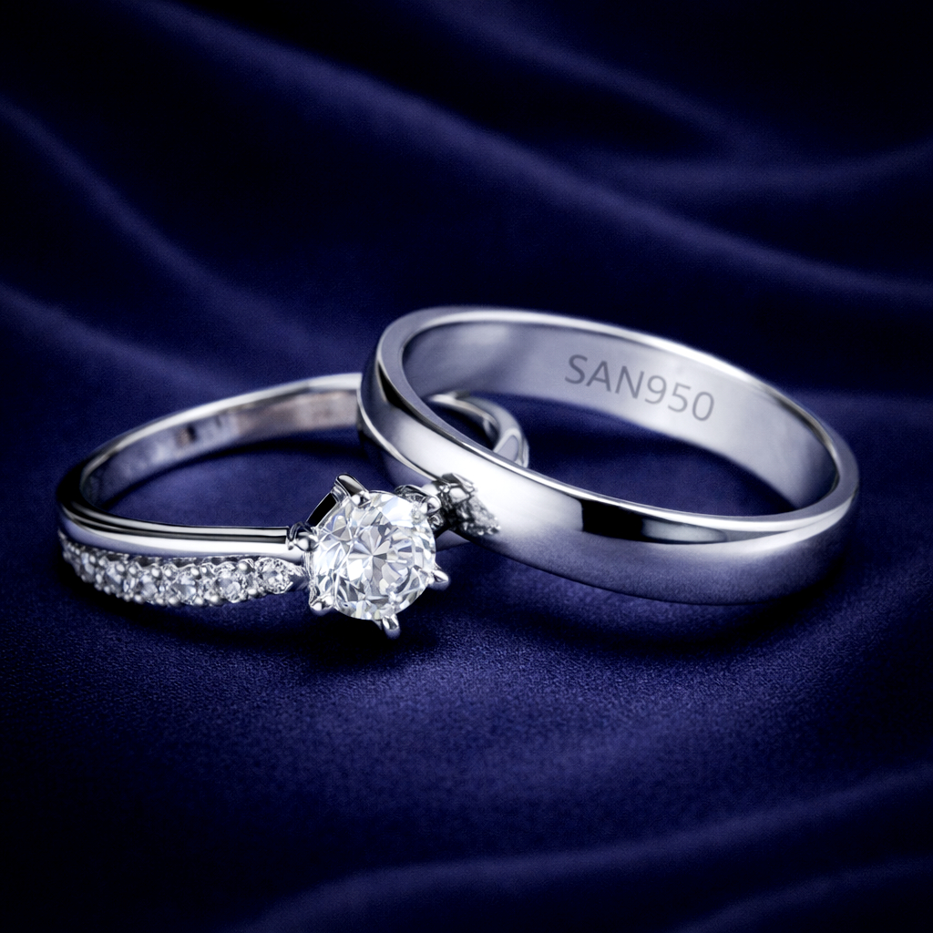 Cincin Nikah Tunangan Couple SAN950 C132 - Perak 950 Palladium Platinum Original - Custom Handmade
