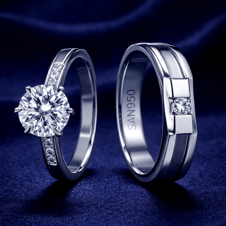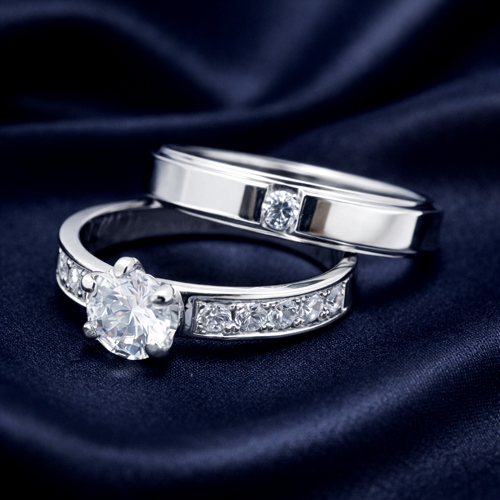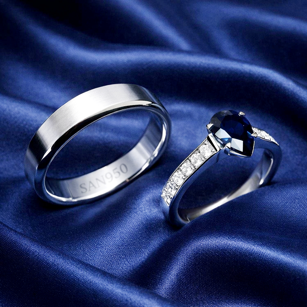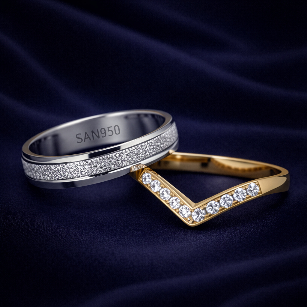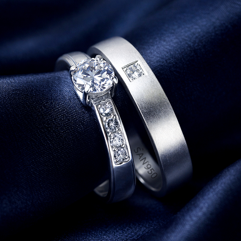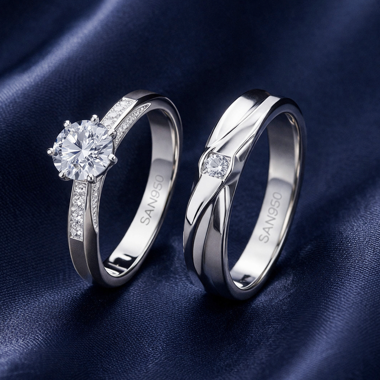Cincin Nikah Tunangan Couple SAN950 C132 - Perak 950 Palladium Platinum Original - Custom Handmade
