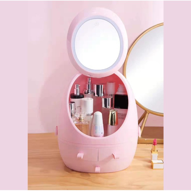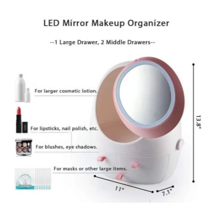 Rak Kosmetik Mirror Ovale With LED Makeup Storage Organizer