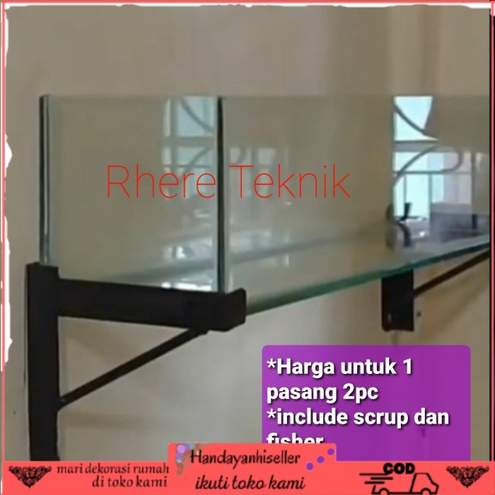 COD rak besi siku aquarium tempel dinding - Hitam, 15x25cm HS