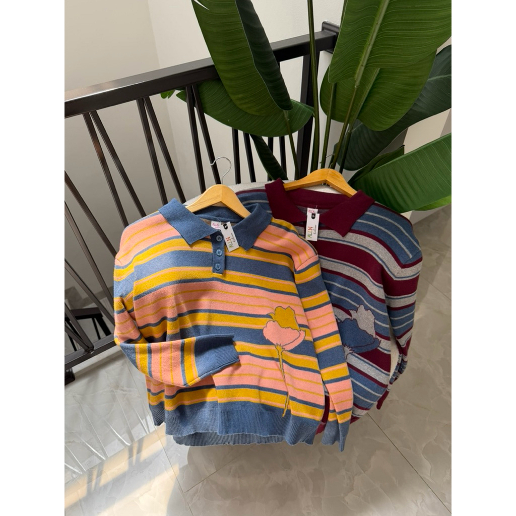 Tara Wangki Knit Motif Bunga Stripe