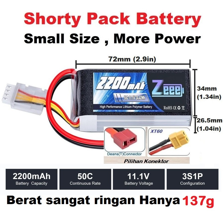 ZEEE 2200mah 3s 11.1v 50c Shorty Pack Lipo Battery Soft Case Batrai Rc 2s 4s 6s
