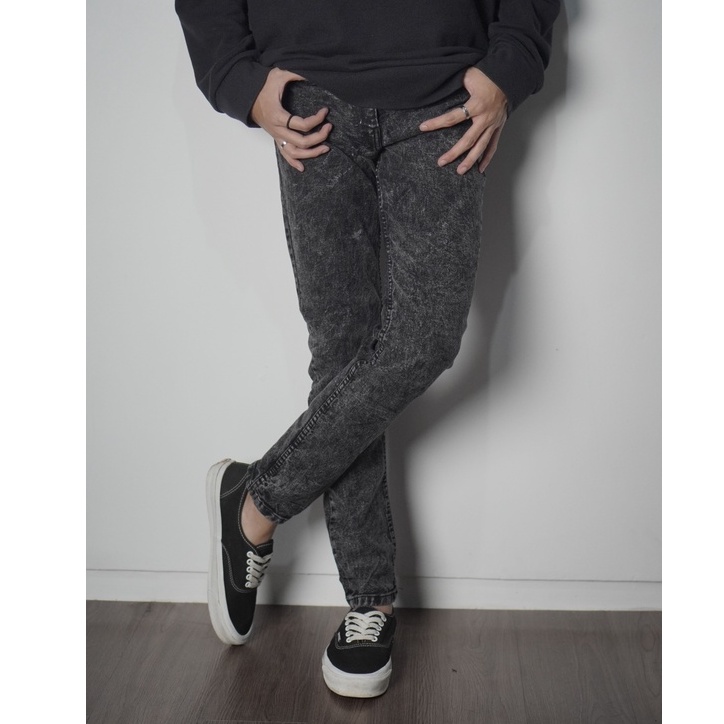 Celana Jeans Pria Black Sandwash Washed SKINNY MELAR SZ 27-38 BAHAN TERBAIK